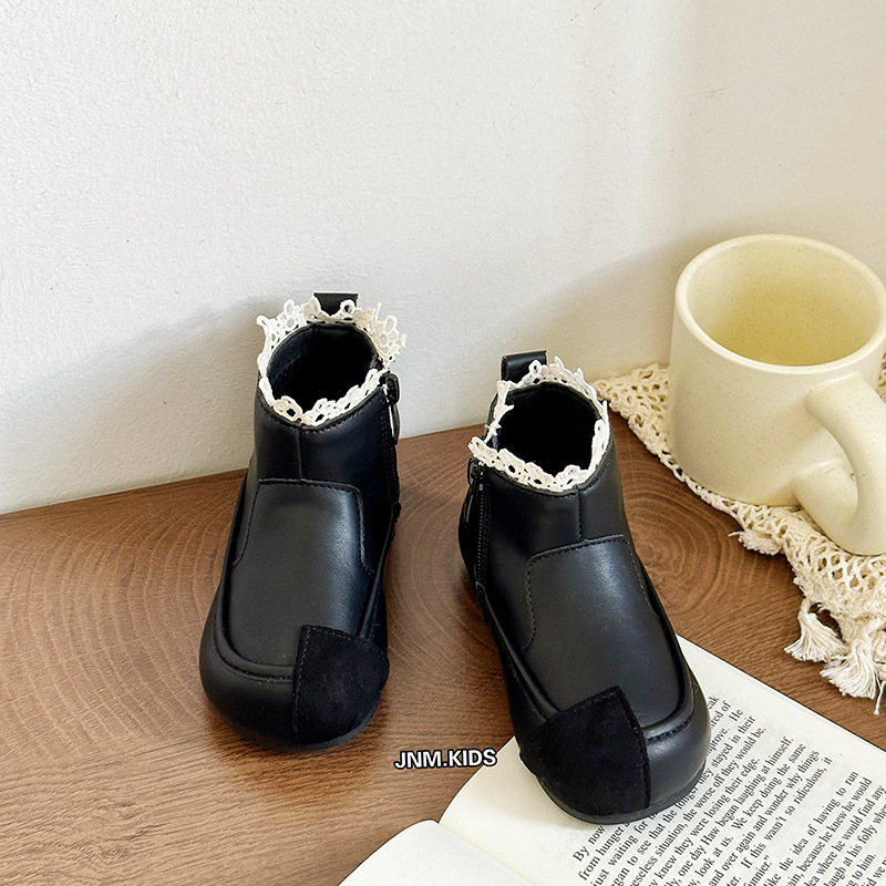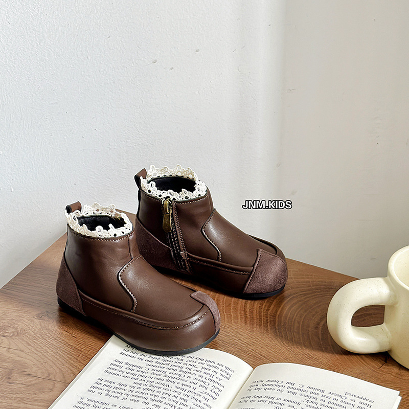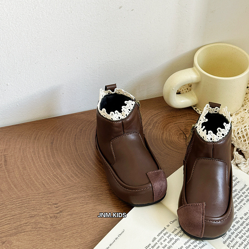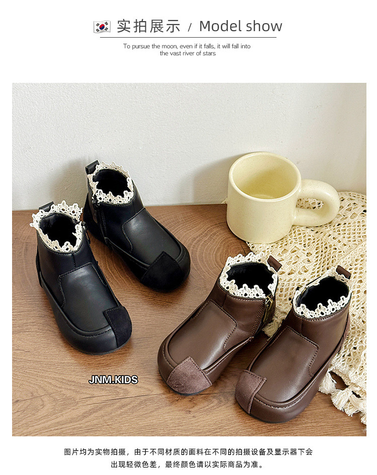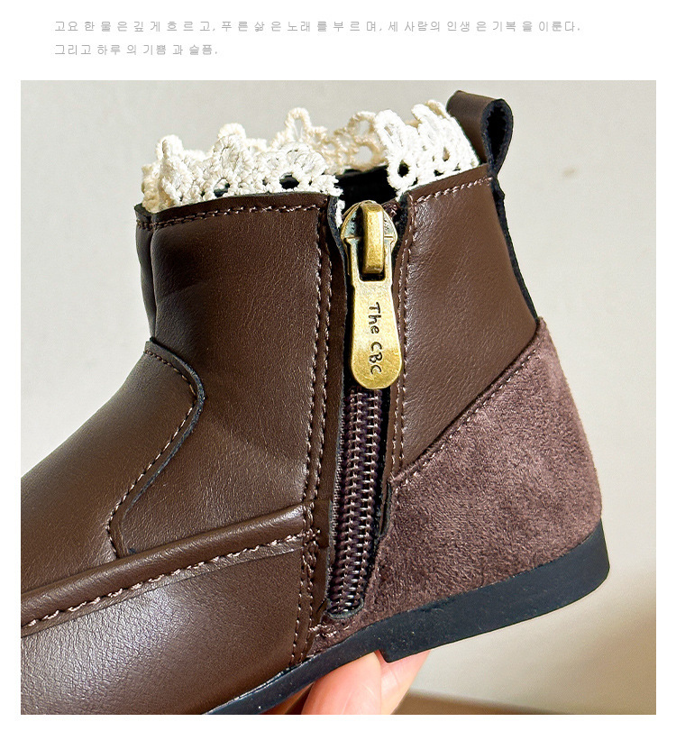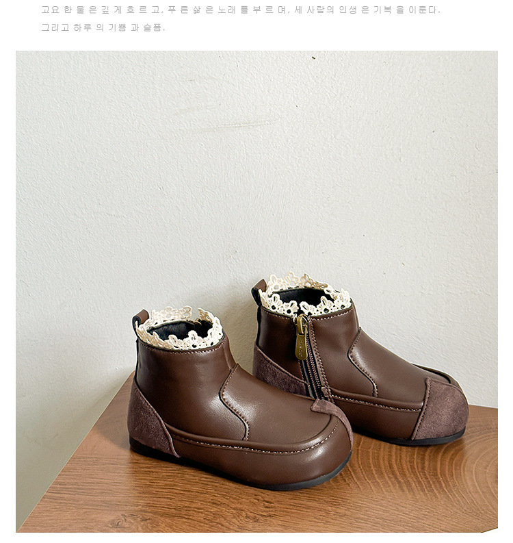 소녀의 부츠 가을 겨울 기모 어린이 마틴 부츠 세련된 레이스 어린 소녀의 두 면 가죽 부츠 아기의 못생긴 귀여운 가죽 신발스토어 가기