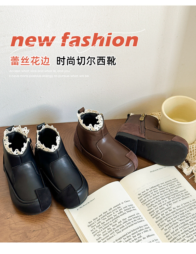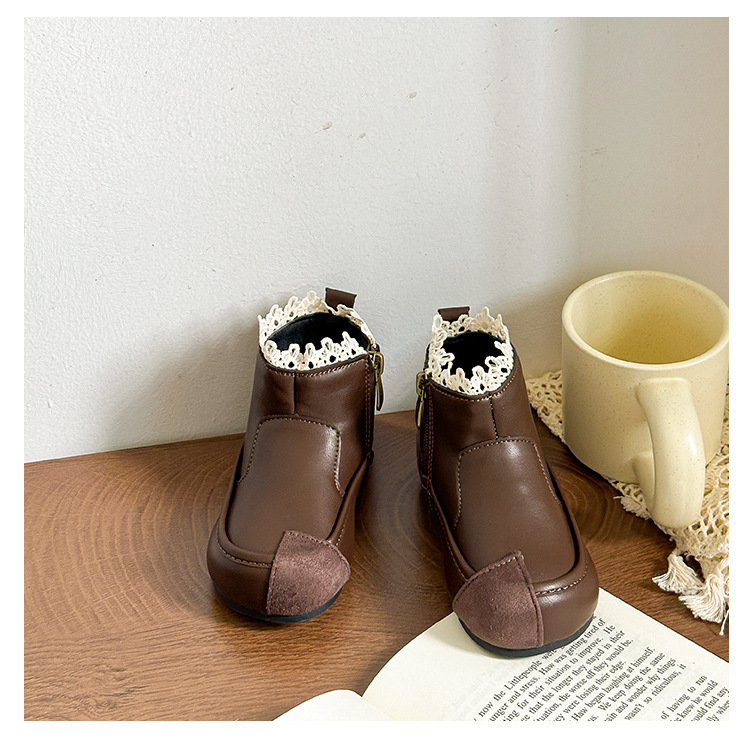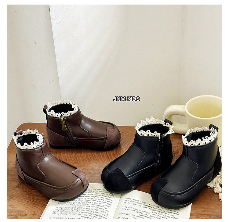 소녀의 부츠 가을 겨울 기모 어린이 마틴 부츠 세련된 레이스 어린 소녀의 두 면 가죽 부츠 아기의 못생긴 귀여운 가죽 신발