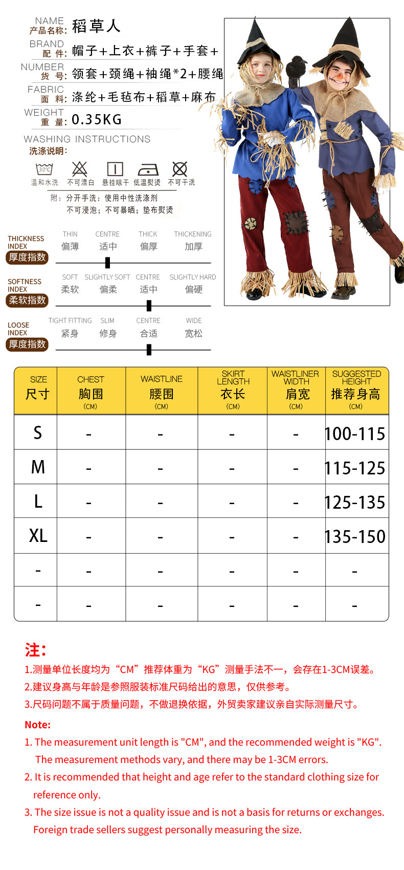 할로윈 의상 오즈 코스프레 허수아비의 마법사 어린이 성인 부모-자녀 드라마 공연 의상