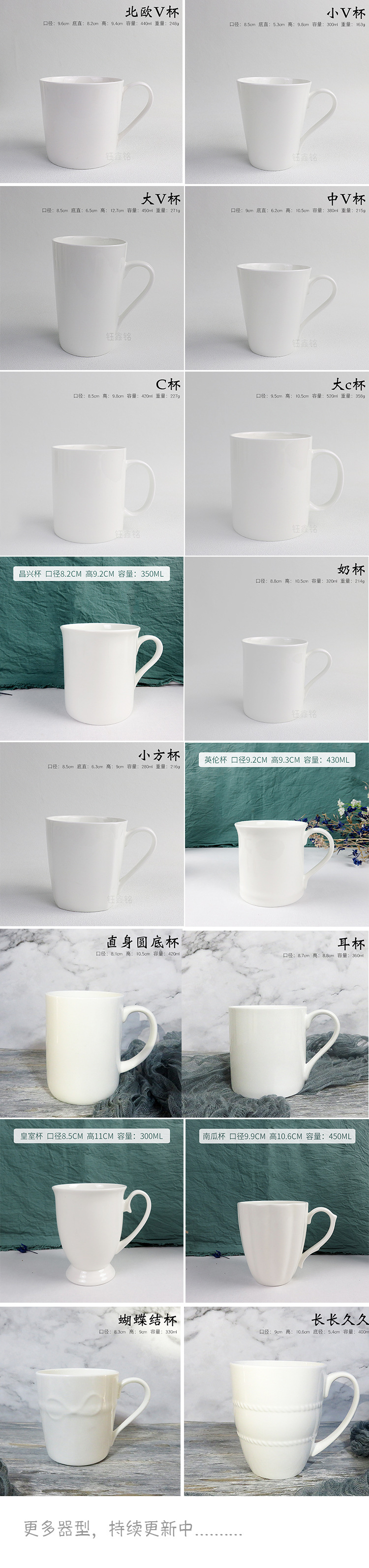 국경 간 무역 수출 대용량 세라믹 컵 순백색 머그컵 도매 본차이나 컵 맞춤 제작스토어 가기