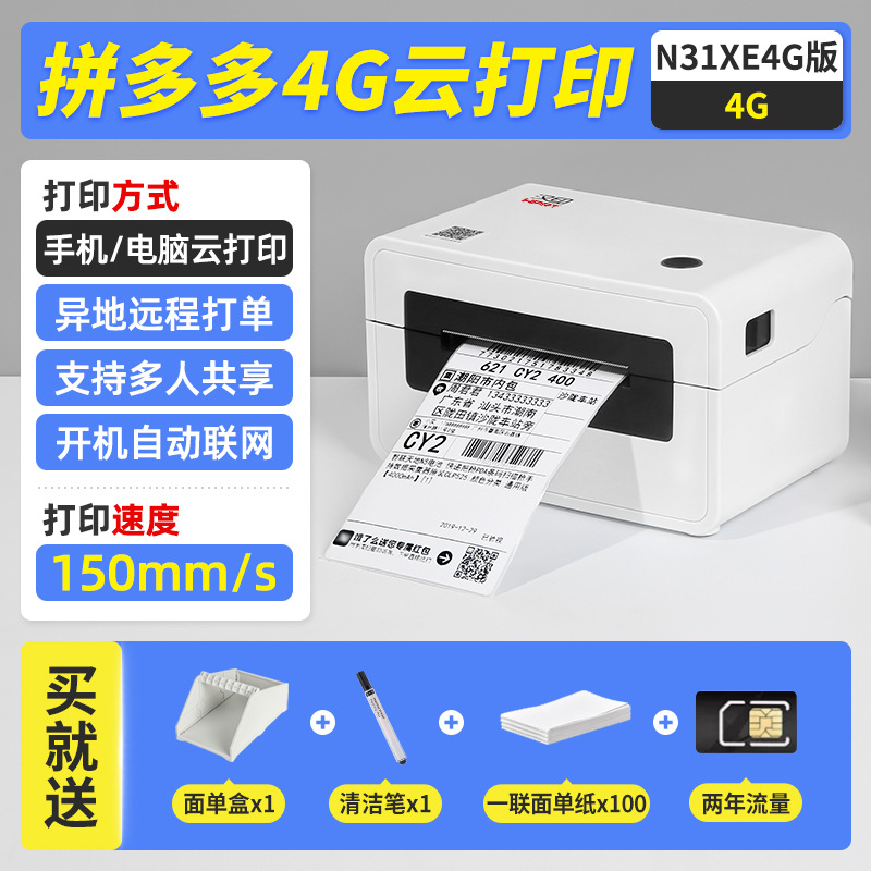 • N31XE Pinduoduo 4G 클라우드 프린팅 [휴대폰/컴퓨터 + 원격 주문] 4가지 무료 선물