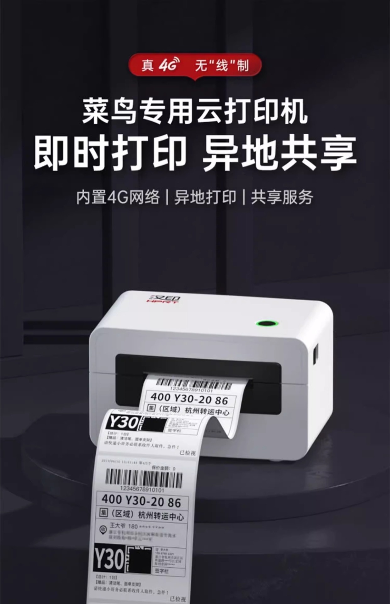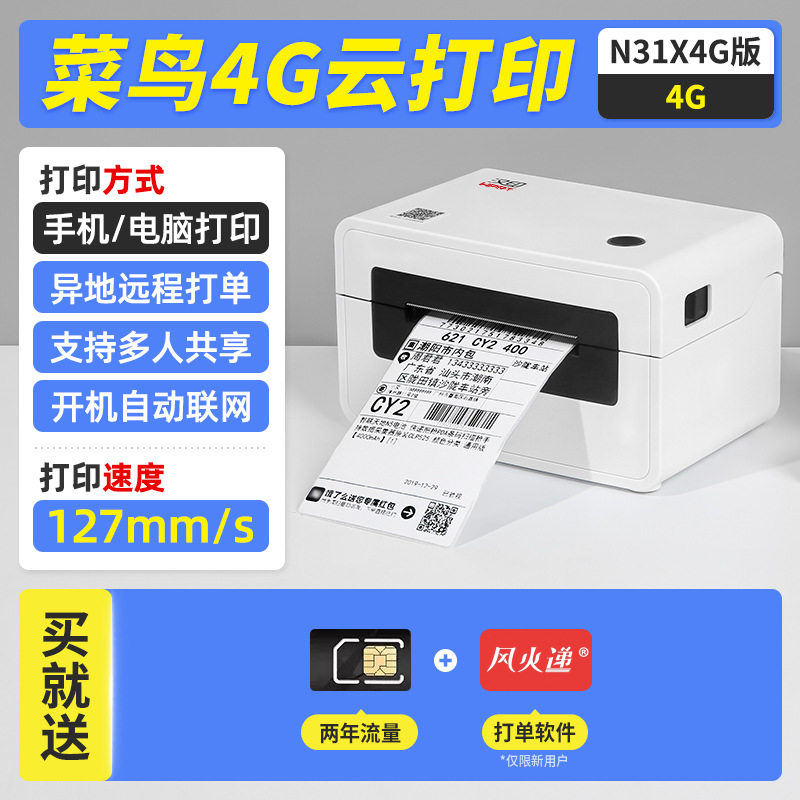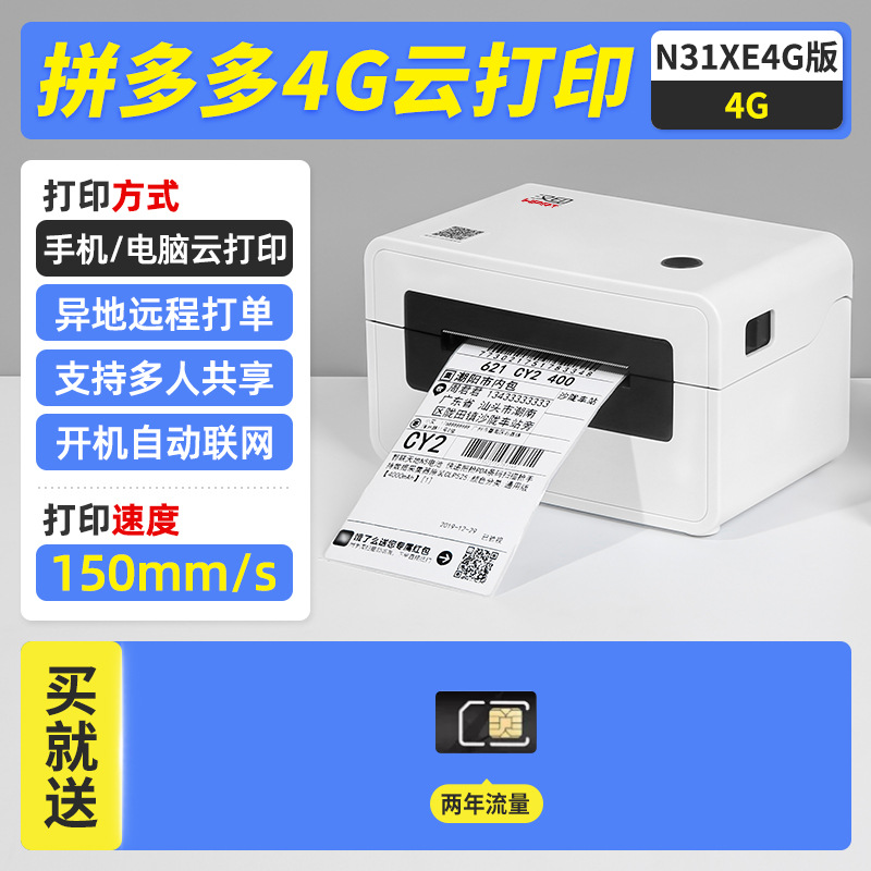 한음 N31X 익스프레스 클라우드 프린터 Cainiao Duoduo 익스프레스 단일 열 라벨 4g 원격 단일 기계스토어 가기