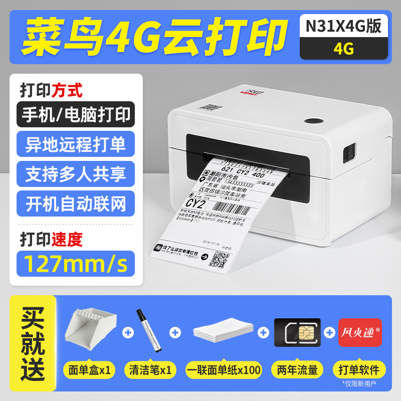 • N31X Cainiao 4G 클라우드 프린팅 [휴대폰/컴퓨터 + 원격 주문] 무료 주문 소프트웨어