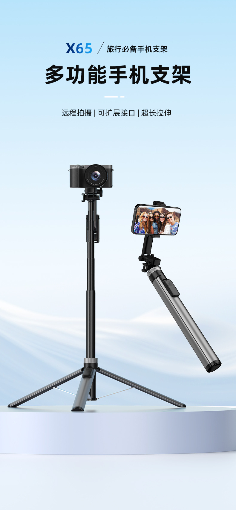 X65 금속 자기 휴대 전화 라이브 발 1.9 m 라이브 장치 삼각대 다기능 핸드 헬드 셀프 레버