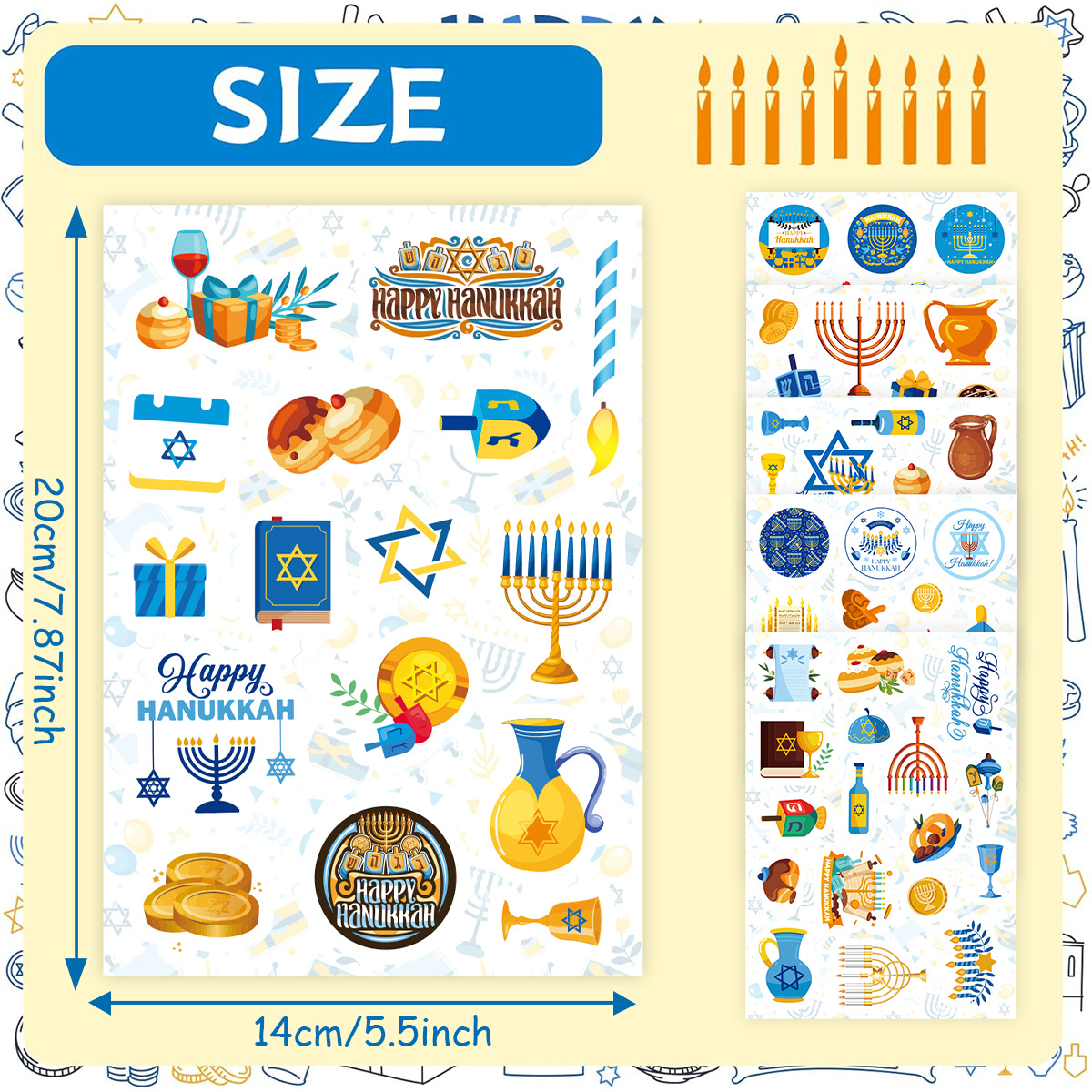 用途:光明节派对布置,可用于派对礼物装饰,派对场景布置贴纸。