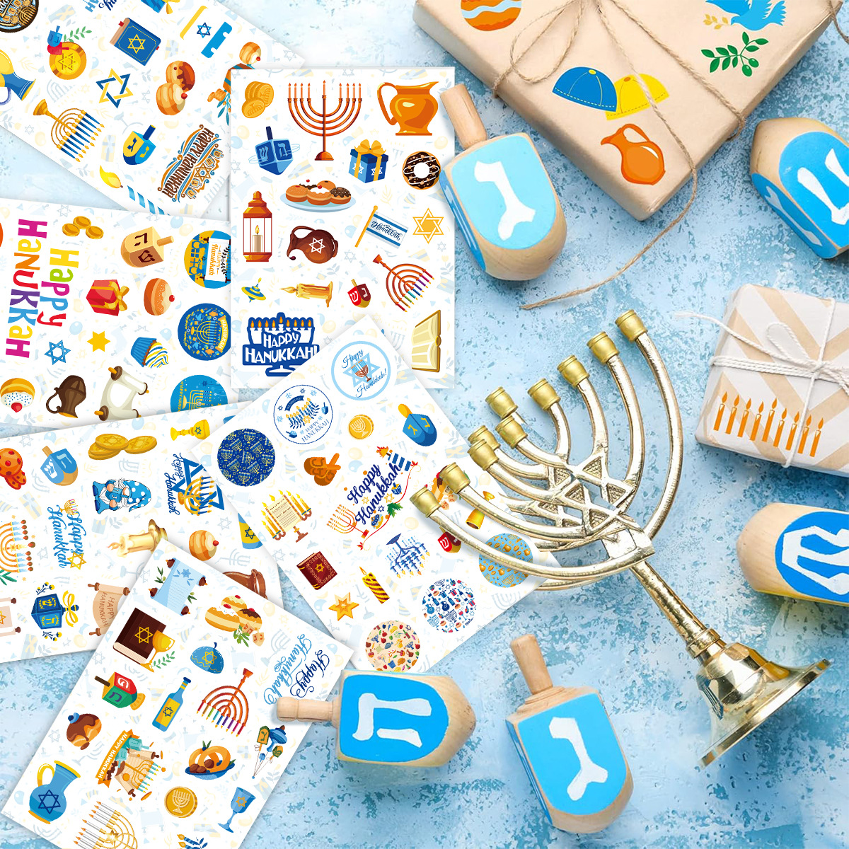유대인 하누카 파티 장식 스티커 HANUKKAH 하누카 스티커 선물 상자 스티커 팔 스티커스토어 가기