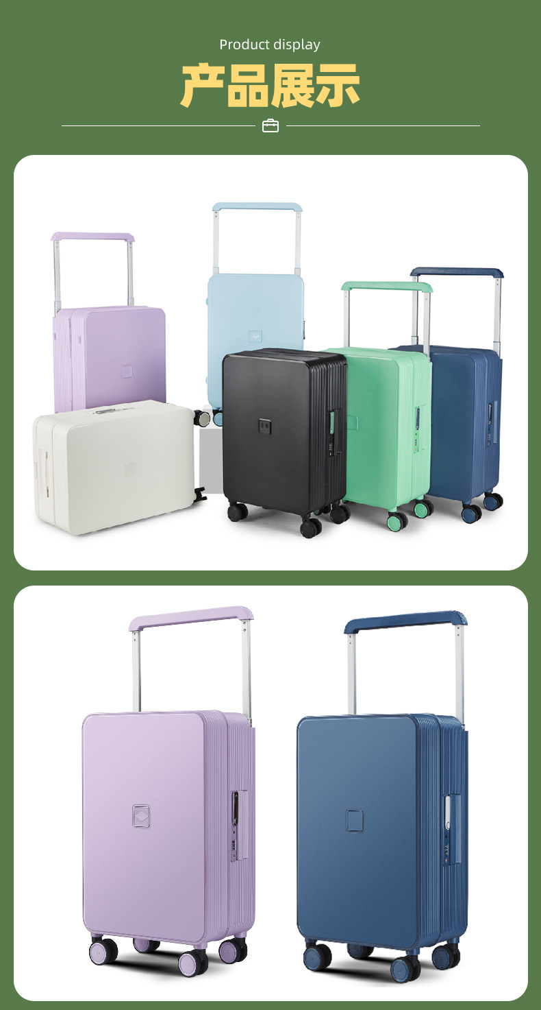 공장 도매 재고 PP 트롤리 케이스, 넓은 트롤리, 저소음 회전 바퀴, 20inch TSA 세관 잠금 기능 탑재 기내용 캐리어스토어 가기