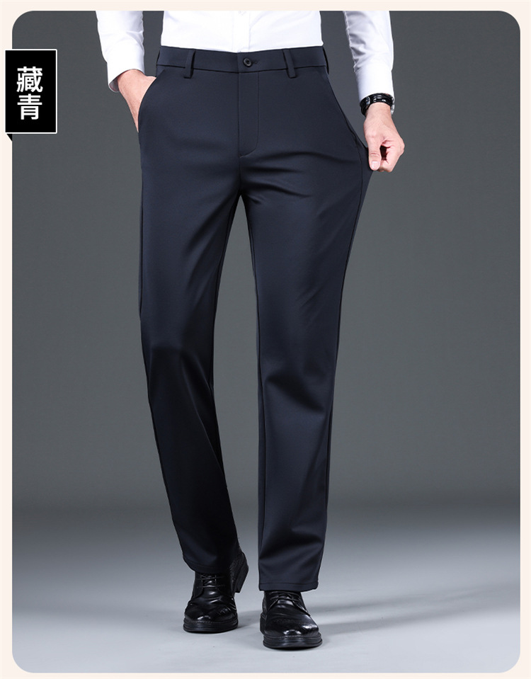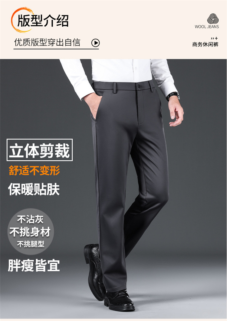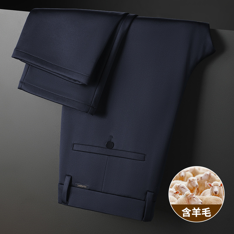 양모 고탄성 비즈니스 정장 바지 남성용 스트레이트 루즈 캐주얼 바지 가을 겨울 두꺼운 플리스 안감 바지 구김 방지 정품