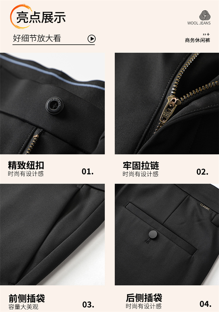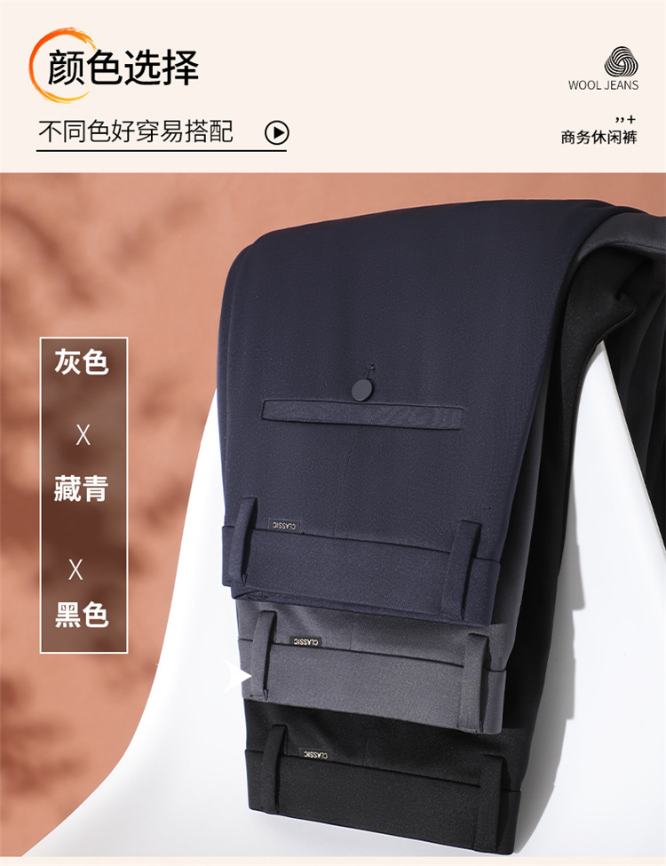 양모 고탄성 비즈니스 정장 바지 남성용 스트레이트 루즈 캐주얼 바지 가을 겨울 두꺼운 플리스 안감 바지 구김 방지 정품스토어 가기