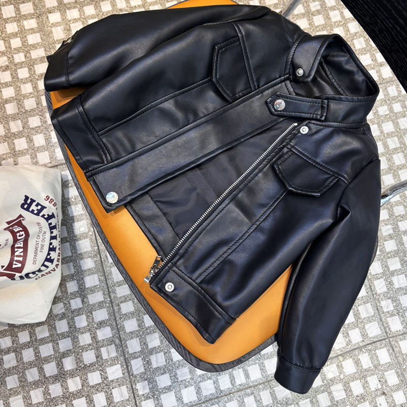 中小大童新款帅气皮衣那女童百搭机车皮夹克外穿春秋宝宝皮衣潮