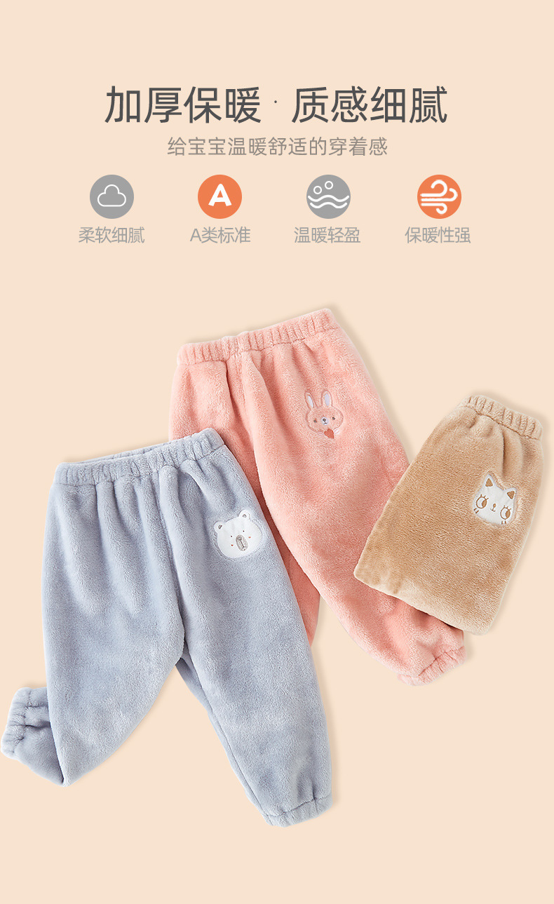 어린이 기모 바지 소년 및 어린이 따뜻한 바지 아기 봄과 가을 산호 플란넬 파자마 바지 두꺼운 아기 따뜻한 바지스토어 가기