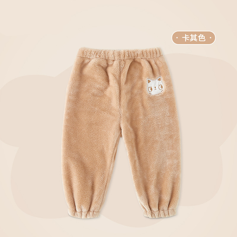 어린이 기모 바지 소년 및 어린이 따뜻한 바지 아기 봄과 가을 산호 플란넬 파자마 바지 두꺼운 아기 따뜻한 바지