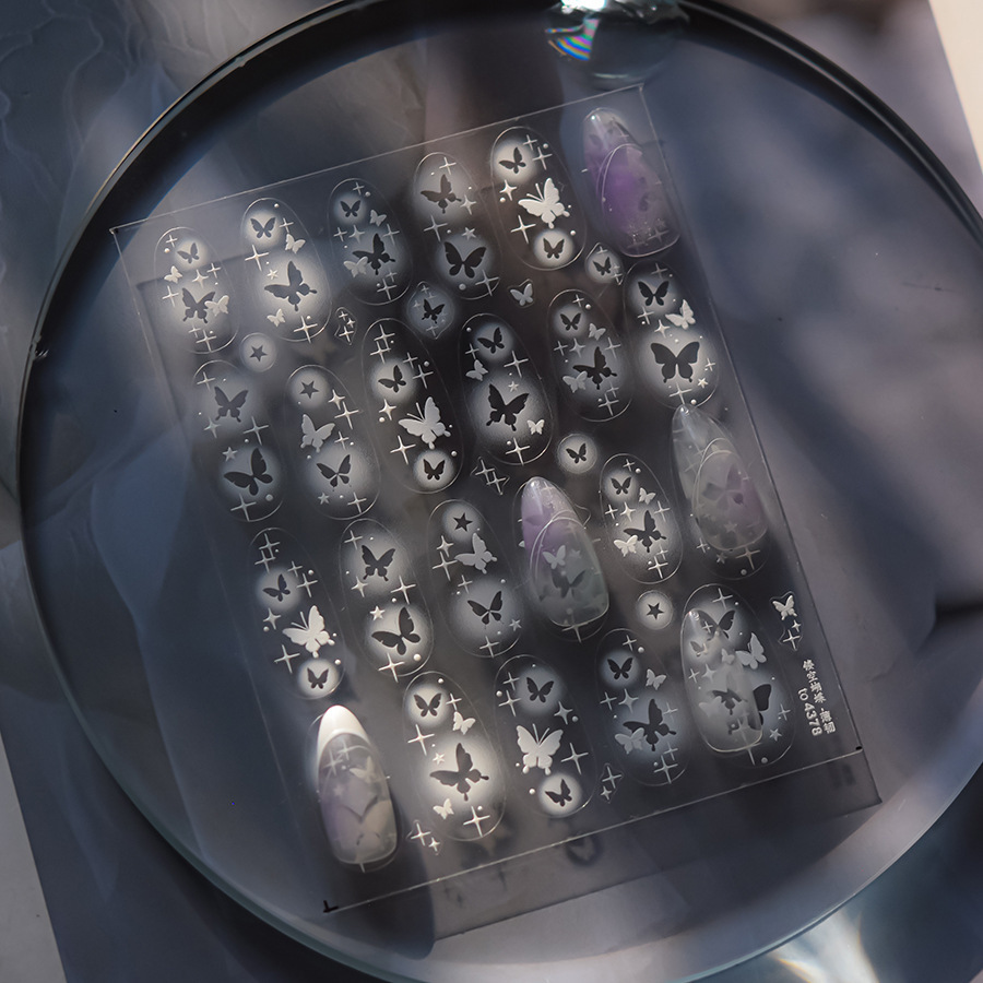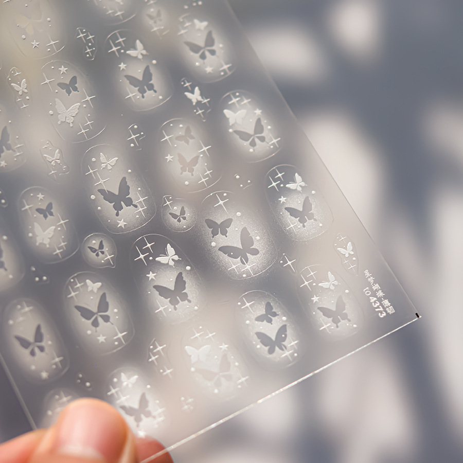 스타 드림 나비 네일 아트 스티커 화이트 헤일로 할로우 나비 스타 스티커 팻 데칼 네일 쥬얼리