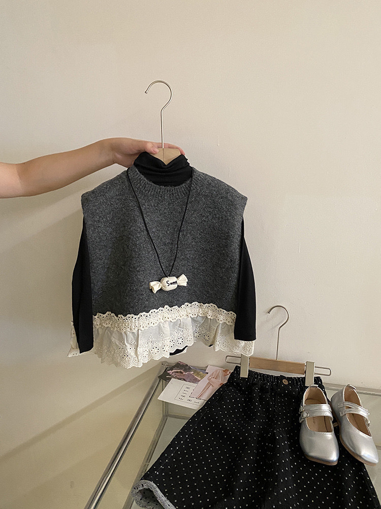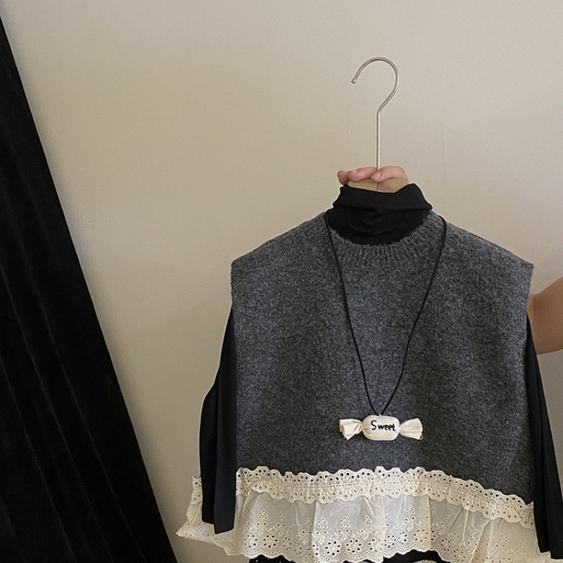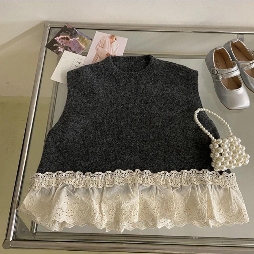 • 레이스 니트 조끼 + 밑단 셔츠 투피스 세트