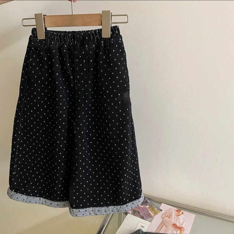 소녀 세트 2024 가을 의류 아기 소녀의 레이스 조끼 베이스 셔츠 웨이브 포인트 넓은 다리 바지 3 조각 세트스토어 가기