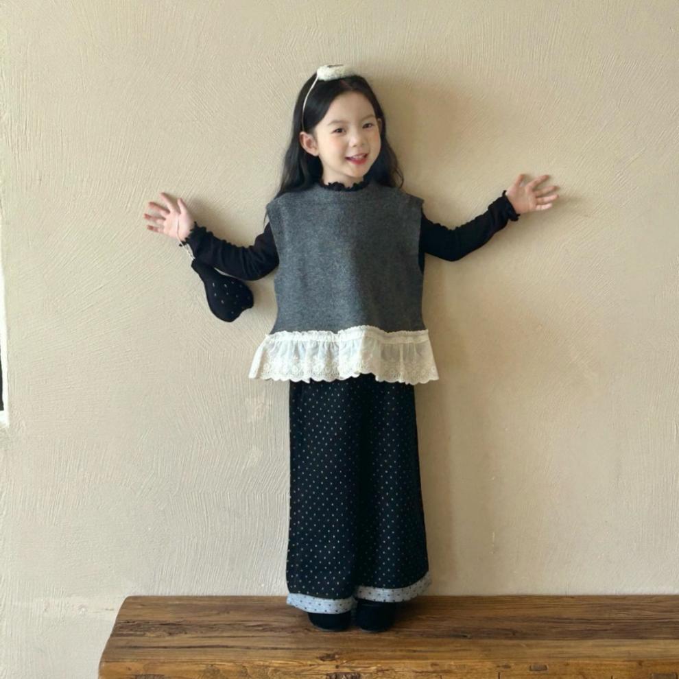 • 레이스 니트조끼+바텀셔츠+와이드팬츠 3종세트