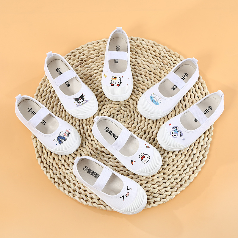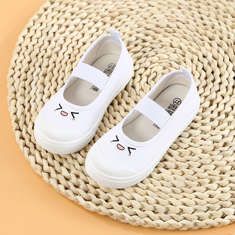 어린이 캔버스 신발 소녀 유치원 실내 신발 봄과 가을 소녀 캐주얼 신발 통기성 미끄럼 미끄럼 방지 보드 신발