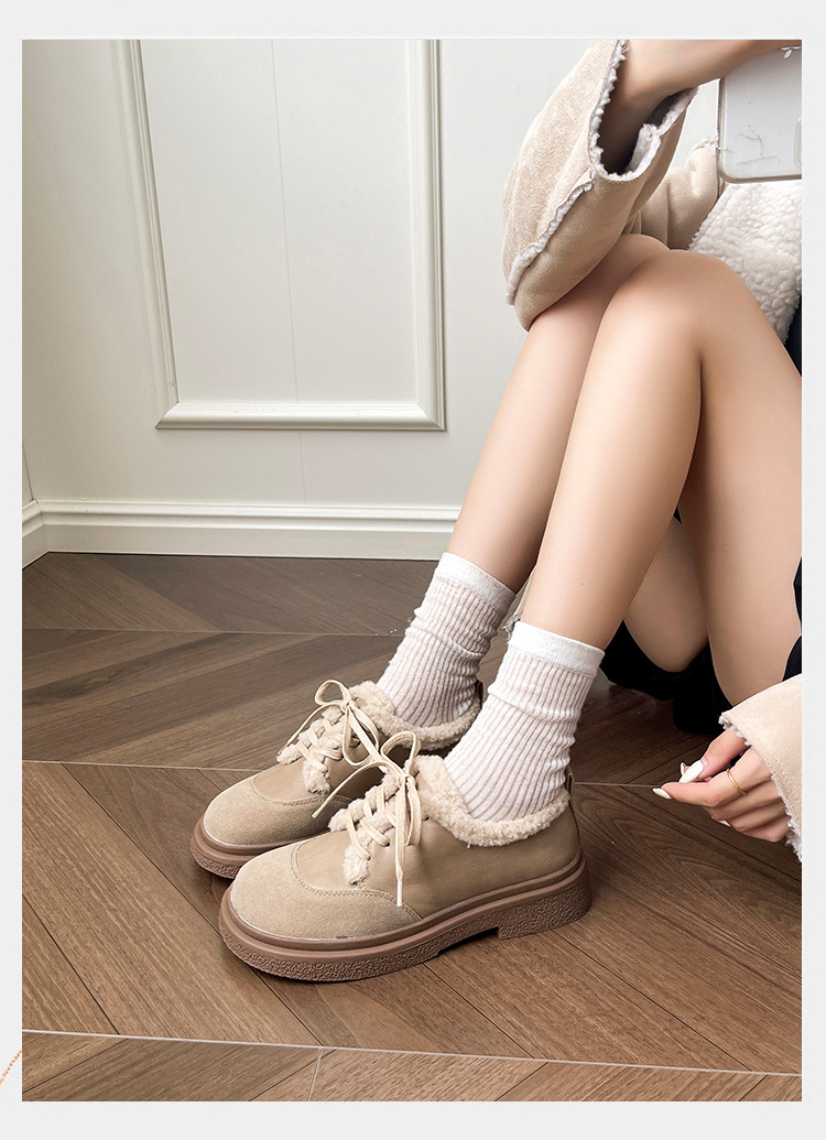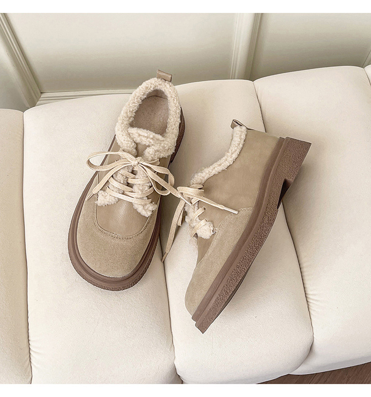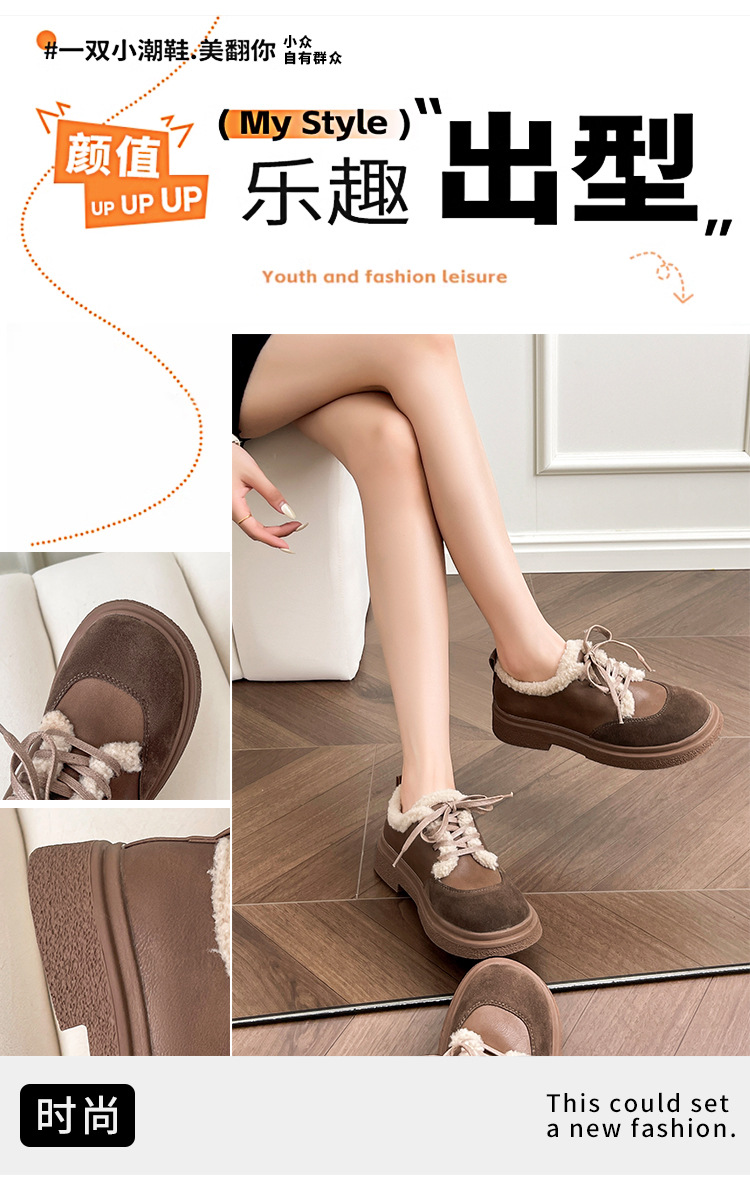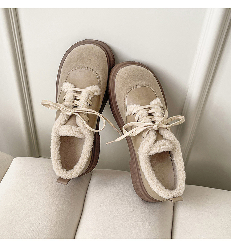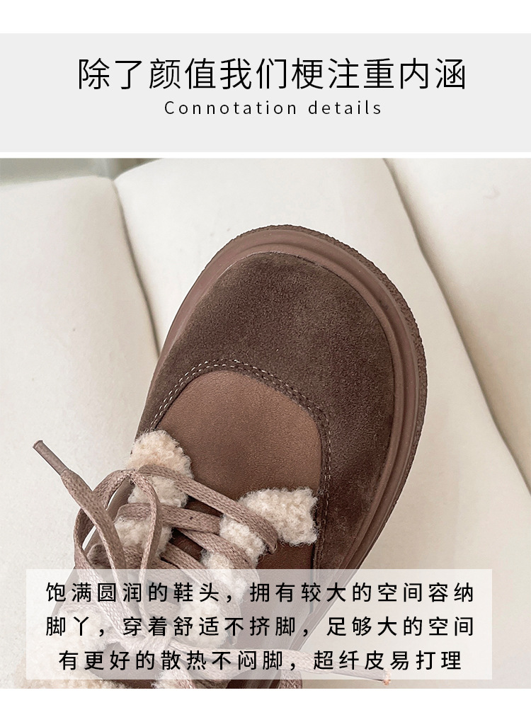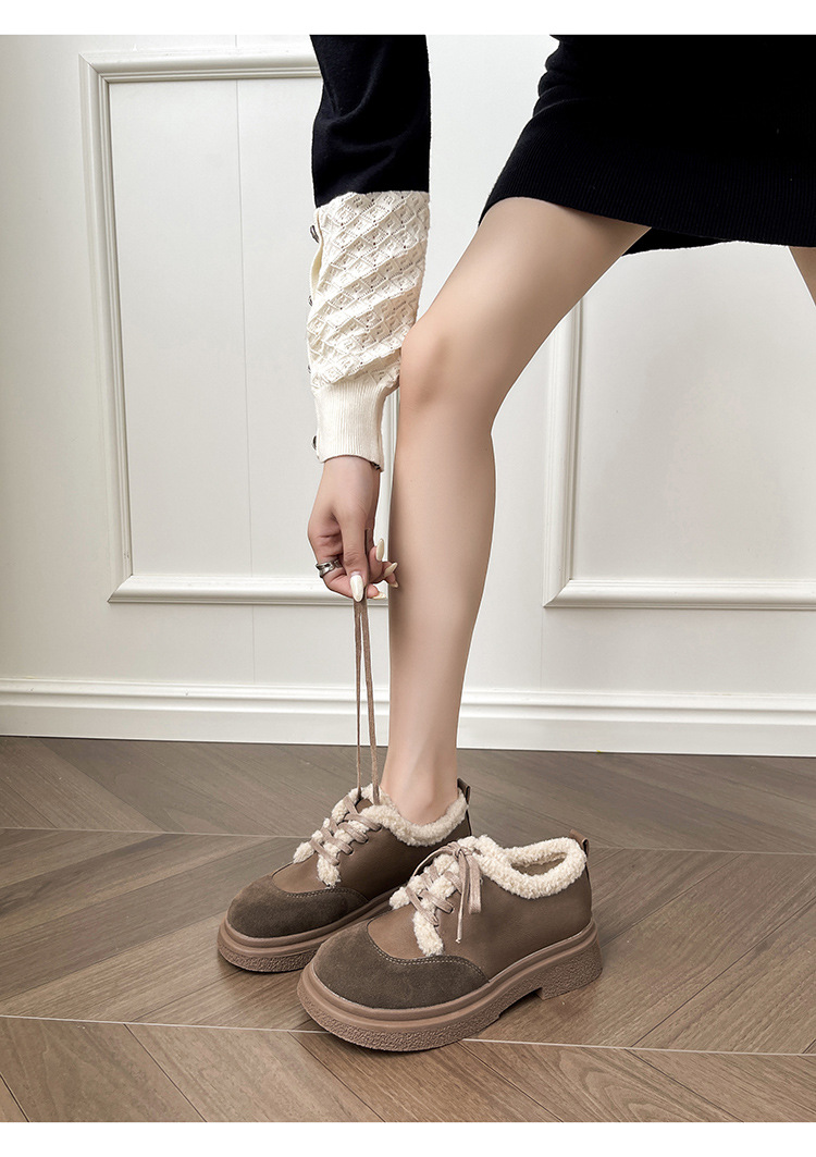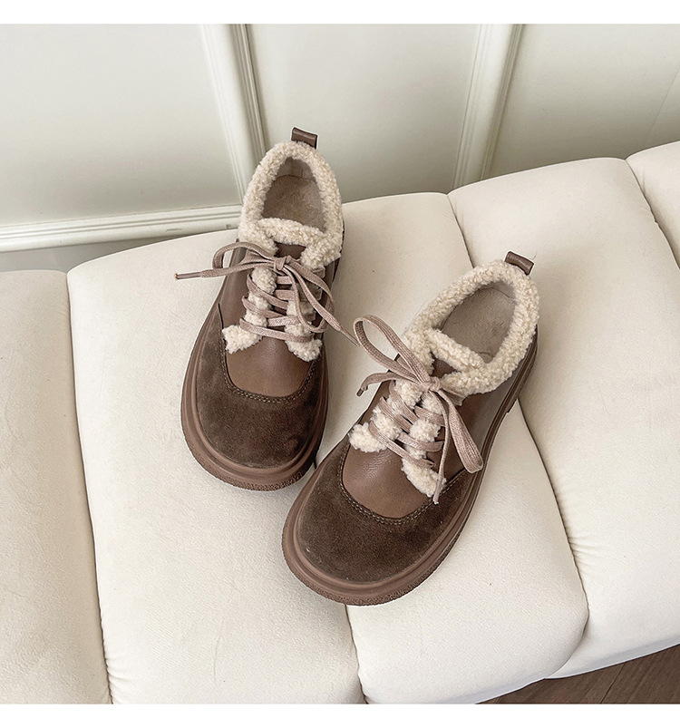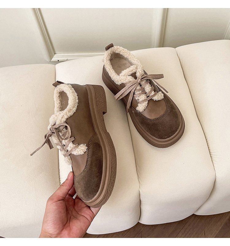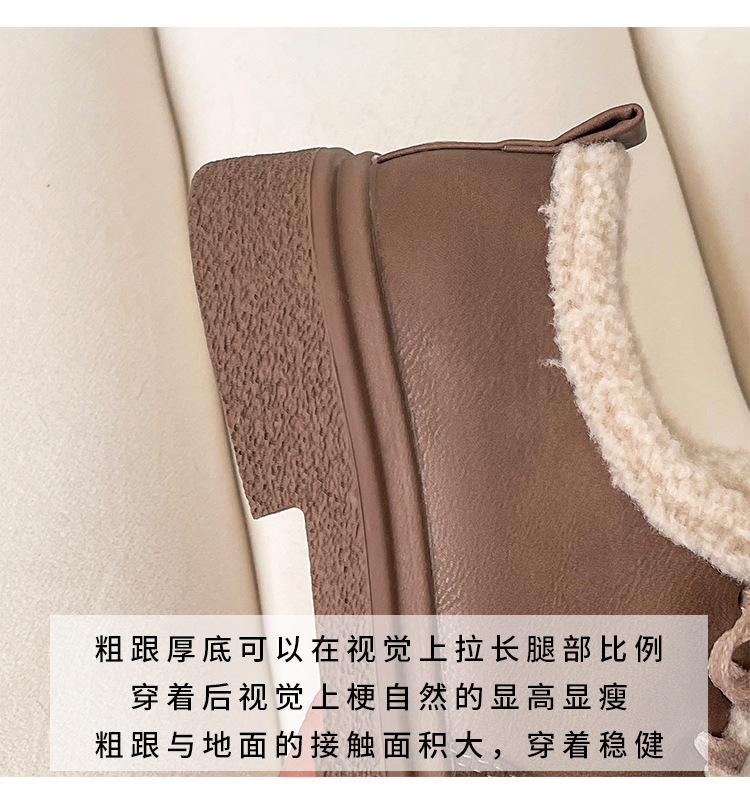 Weiwei Girl 688-2 두꺼운 코튼 슈즈 여성용 두꺼운 힐 레트로 겨울 기모 따뜻한 마오 마오 신발 레이스 업 작은 가죽 신발