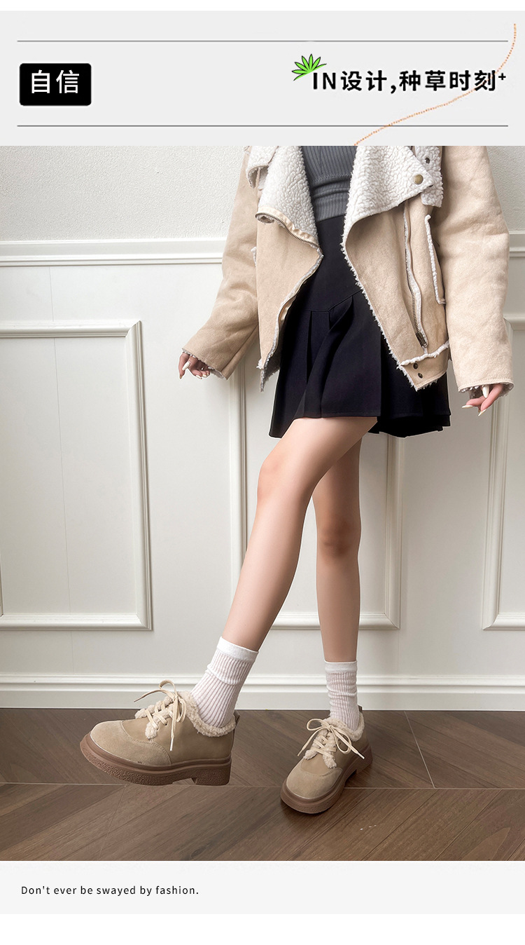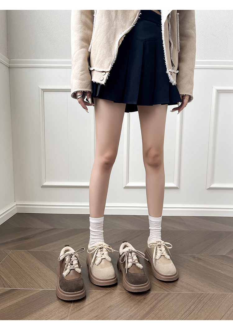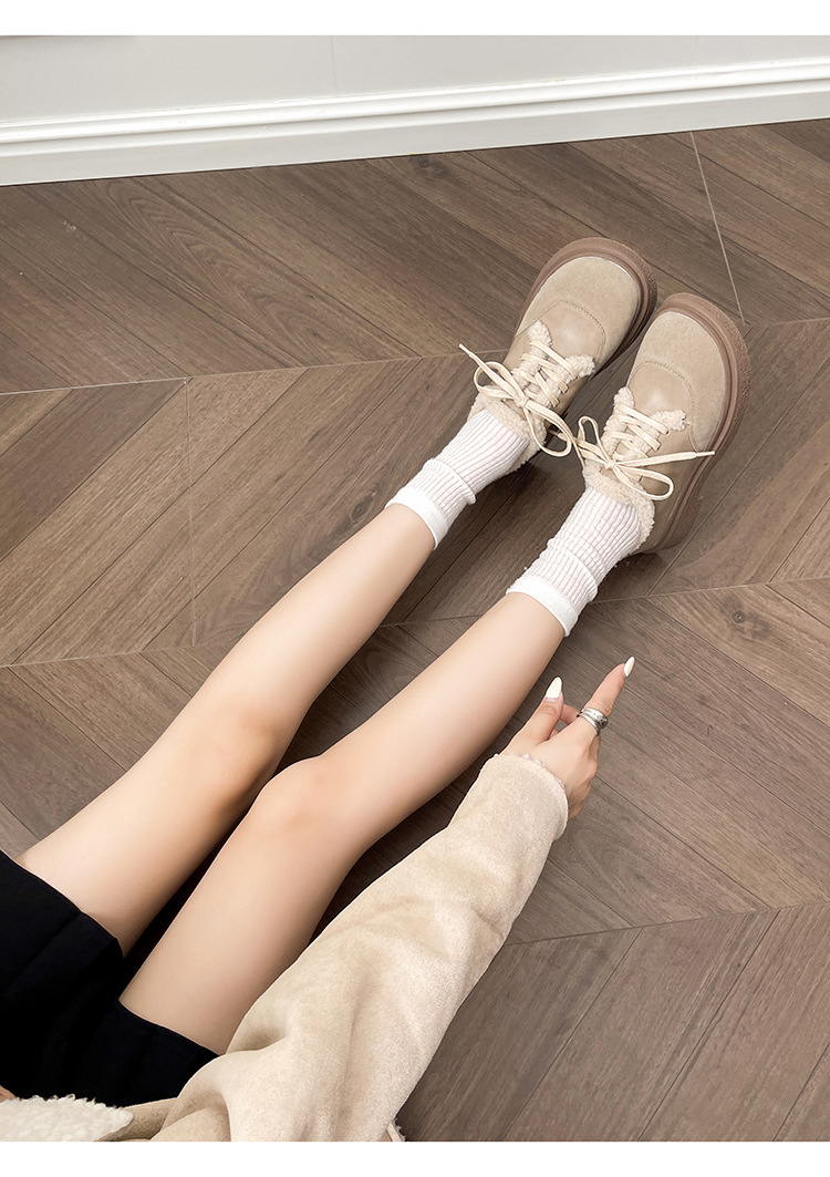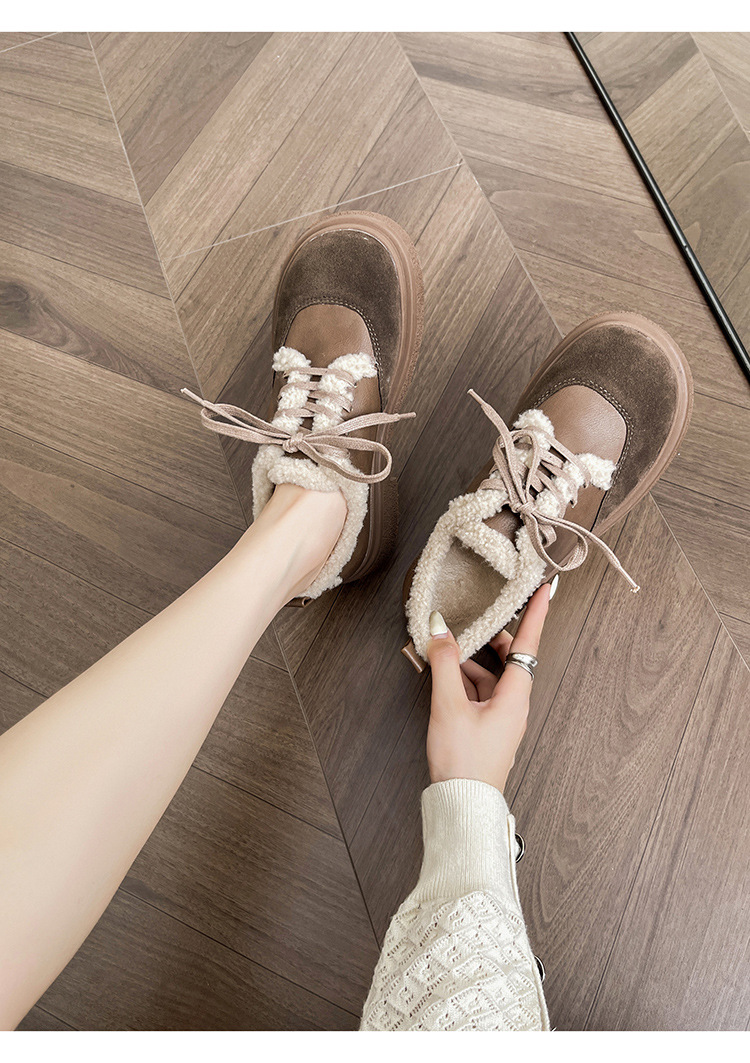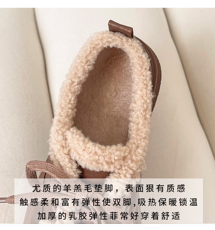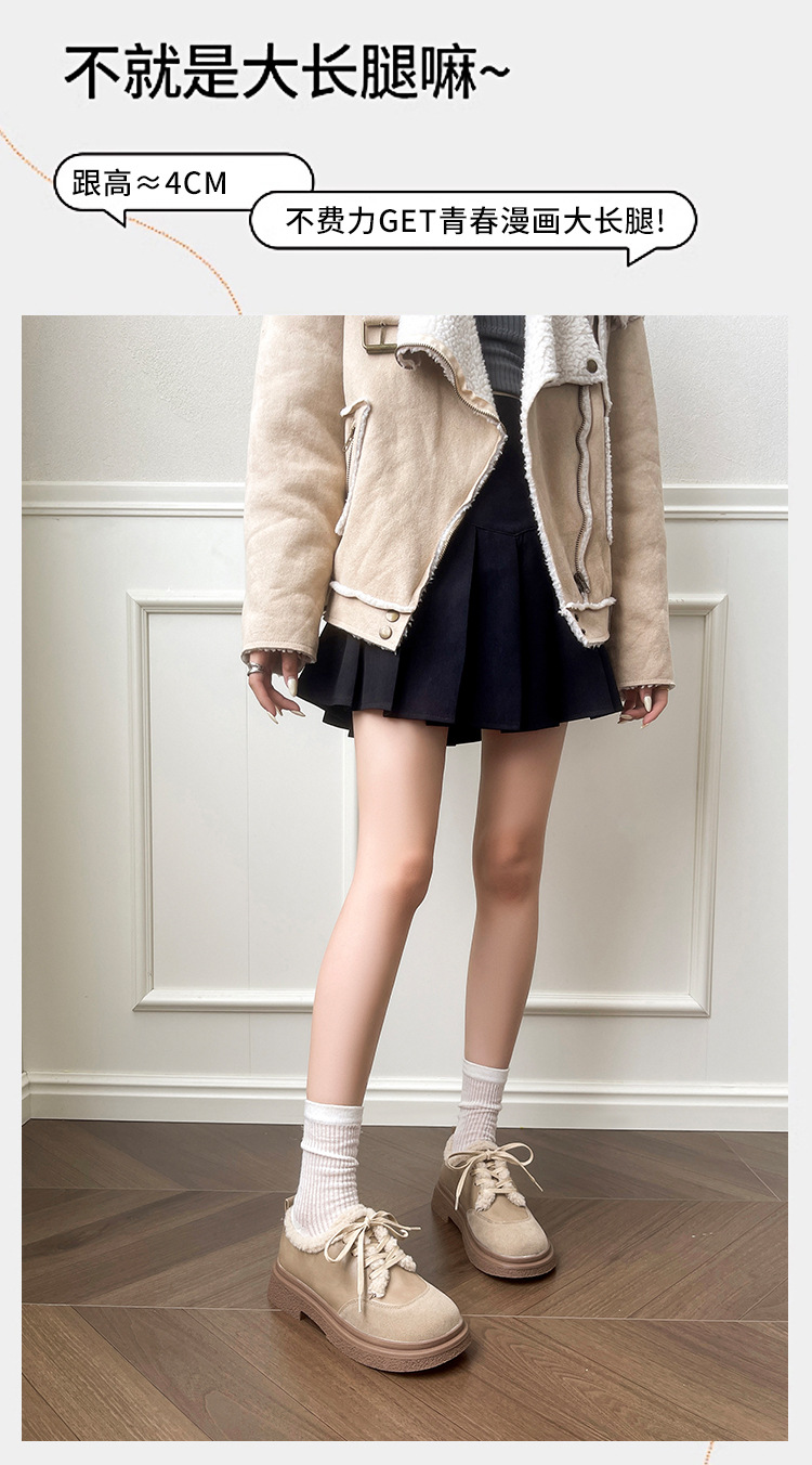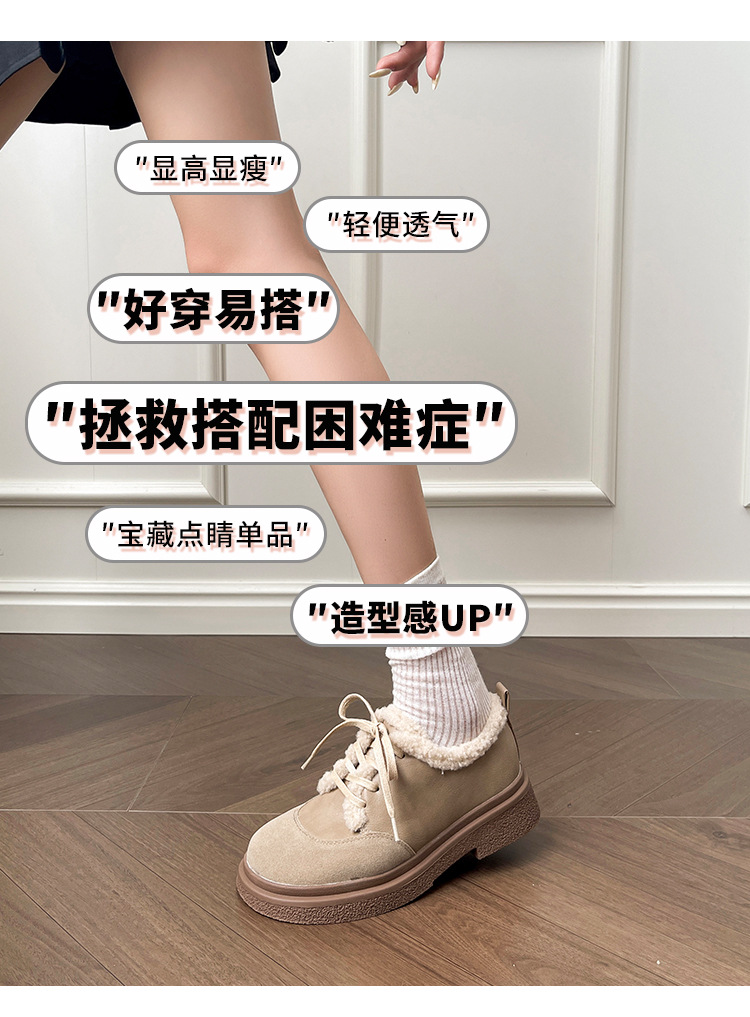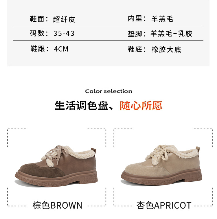 Weiwei Girl 688-2 두꺼운 코튼 슈즈 여성용 두꺼운 힐 레트로 겨울 기모 따뜻한 마오 마오 신발 레이스 업 작은 가죽 신발