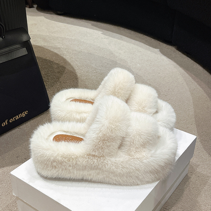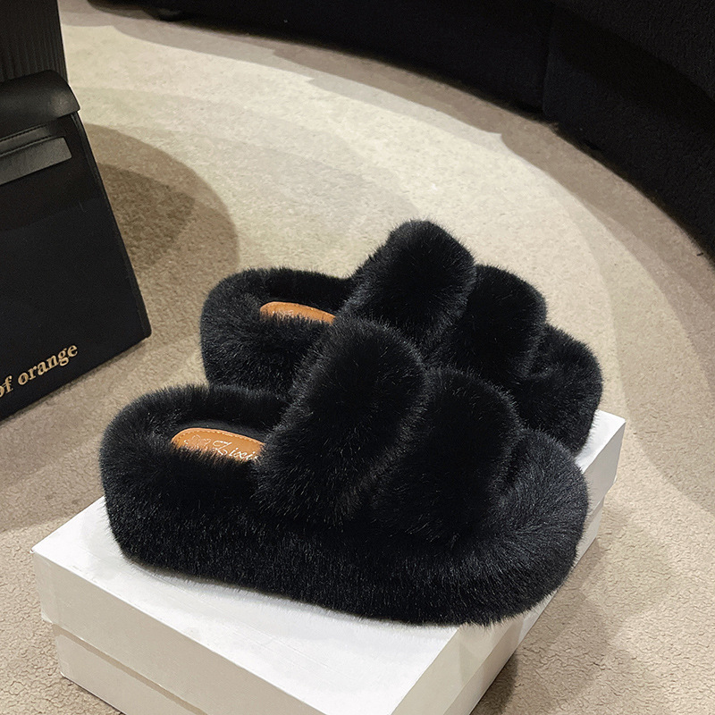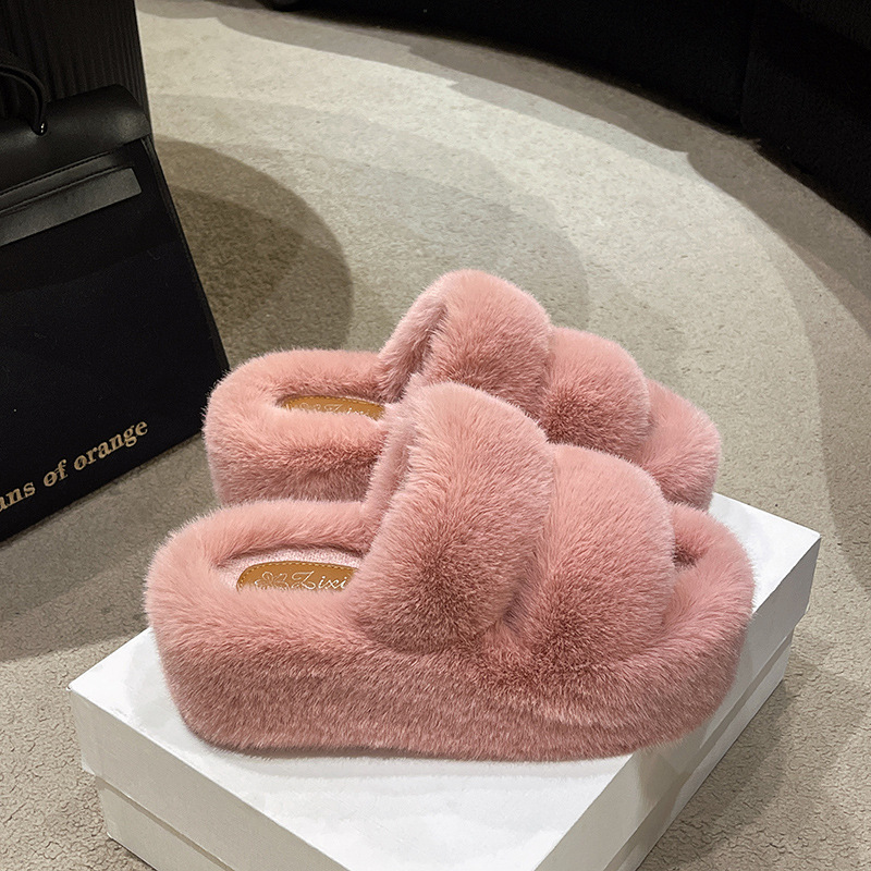 마오 마오 슬리퍼 여성 의상 2024 새로운 겨울 하이 엔드 소프트 솔 두꺼운 단독 신발 홈 강화 크로스 마오 신발스토어 가기