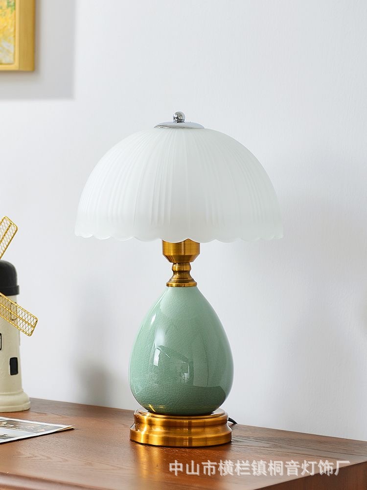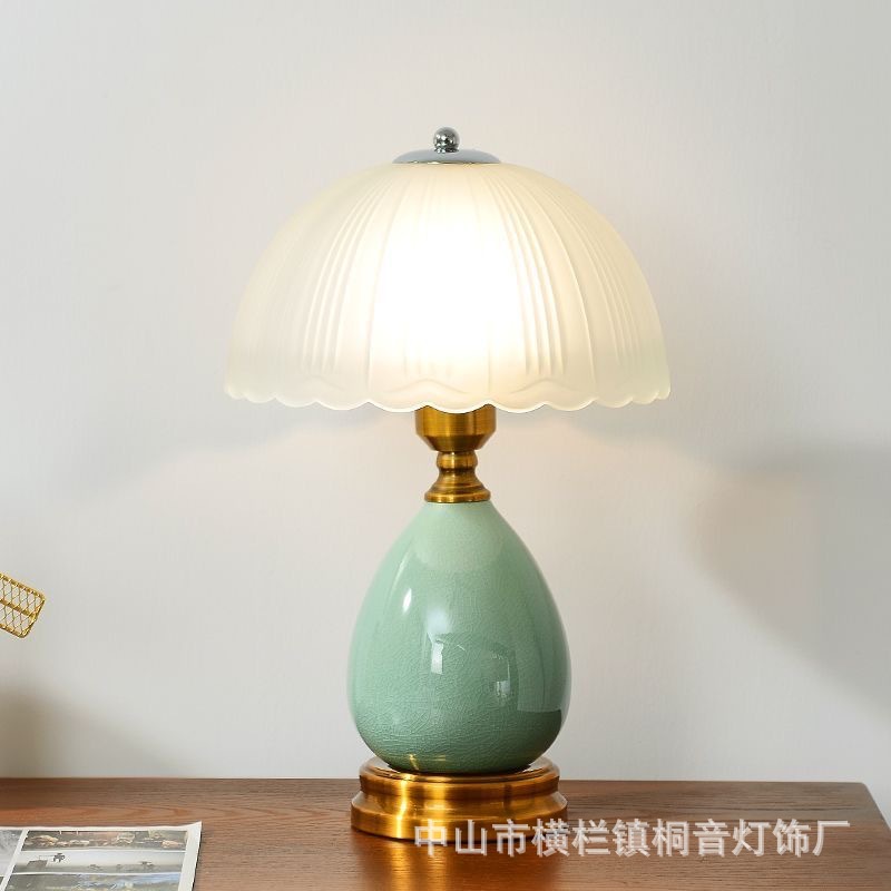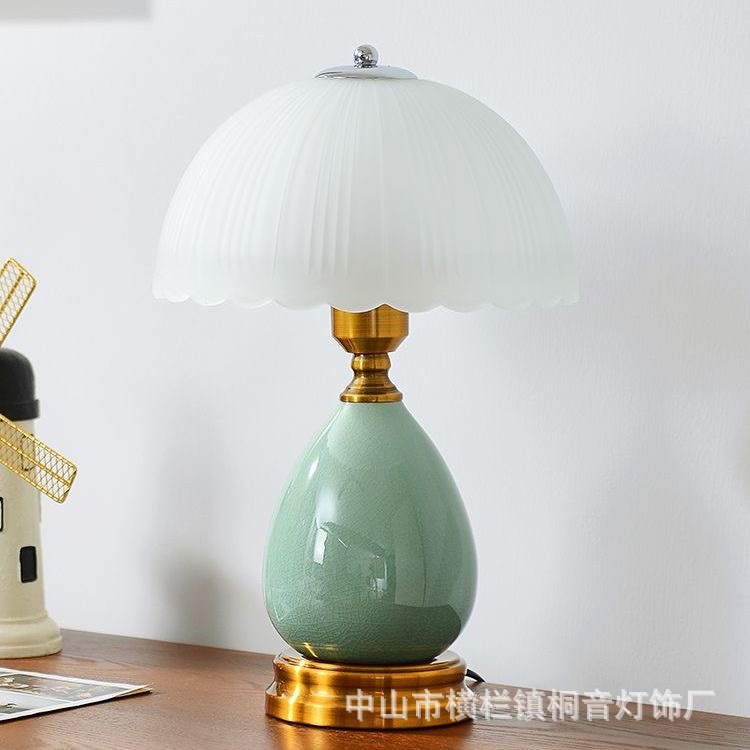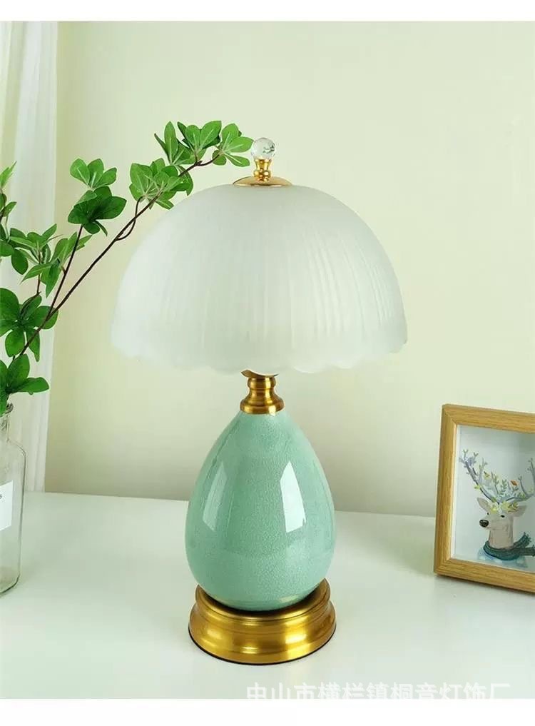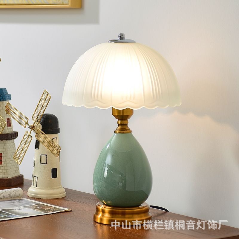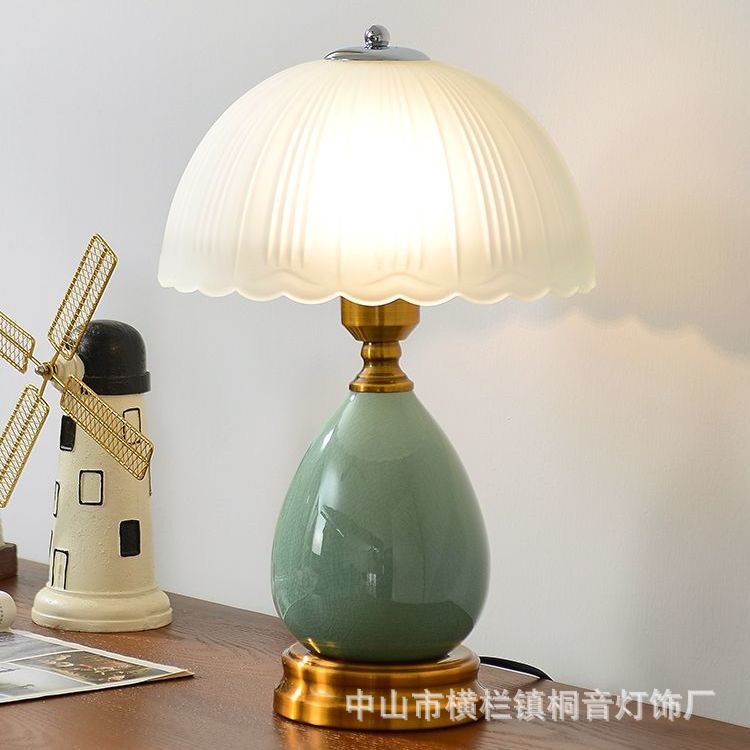 고급 미국 빛 럭셔리 침실 침실 램프 빈티지 테이블 램프 야간 유리 세라믹 데스크탑 분위기 장식 테이블 램프