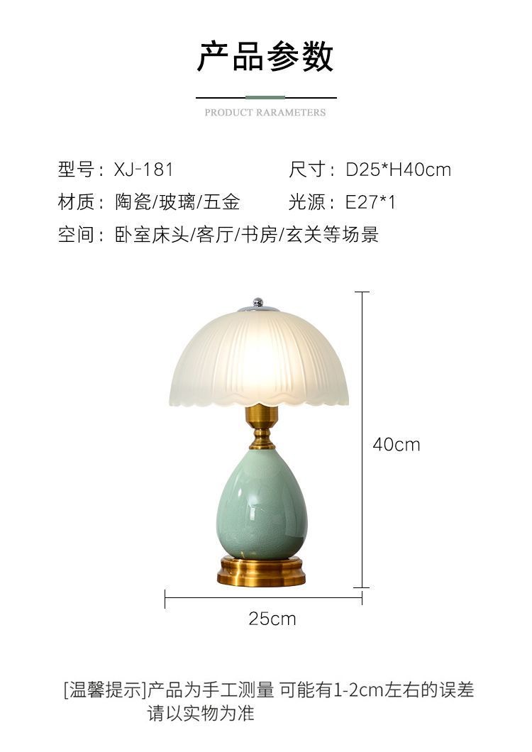 고급 미국 빛 럭셔리 침실 침실 램프 빈티지 테이블 램프 야간 유리 세라믹 데스크탑 분위기 장식 테이블 램프스토어 가기