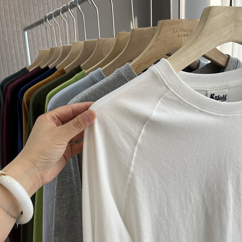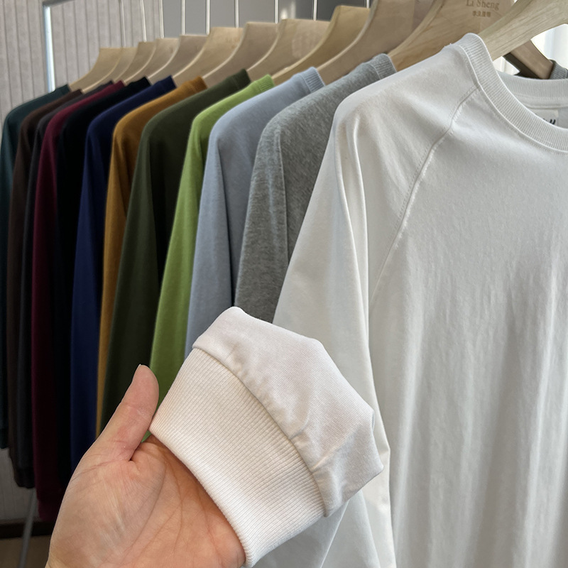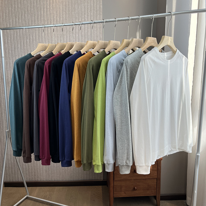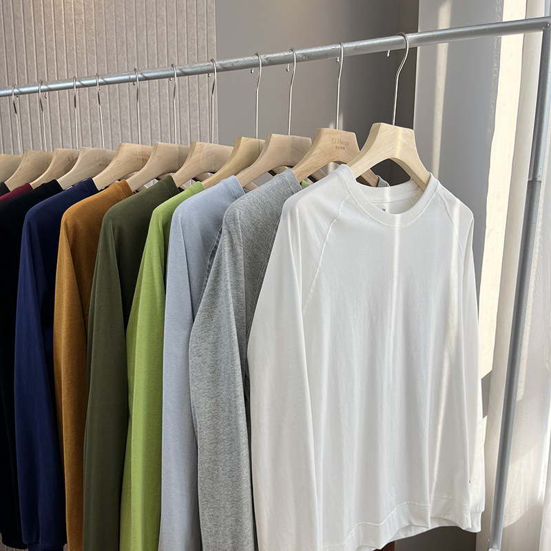 기본 순수 화이트 가을과 겨울 올 매치 라운드 넥 긴 어깨 슬리브 스웨터 남자 캐주얼 베이스 셔츠 면 2024스토어 가기
