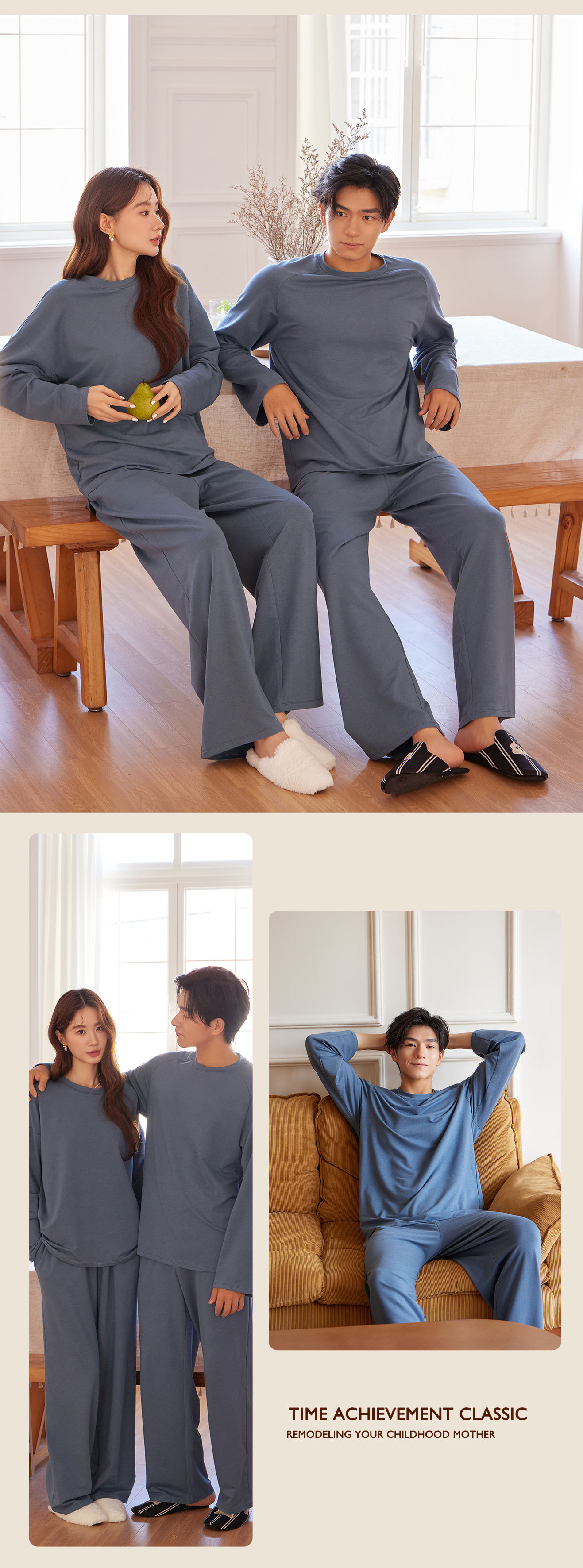 가을과 겨울 면화 커플 잠옷 여성용 둥근 목 스웨터 긴 소매 바지 남자 홈 의류 세트스토어 가기