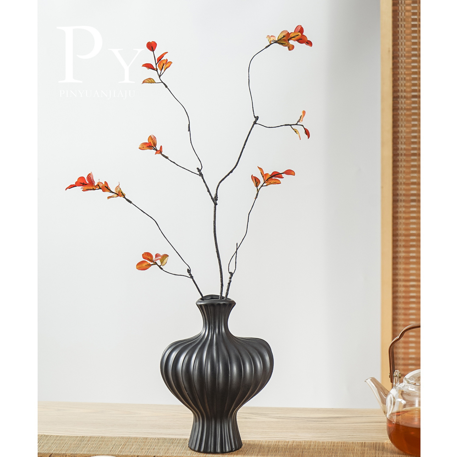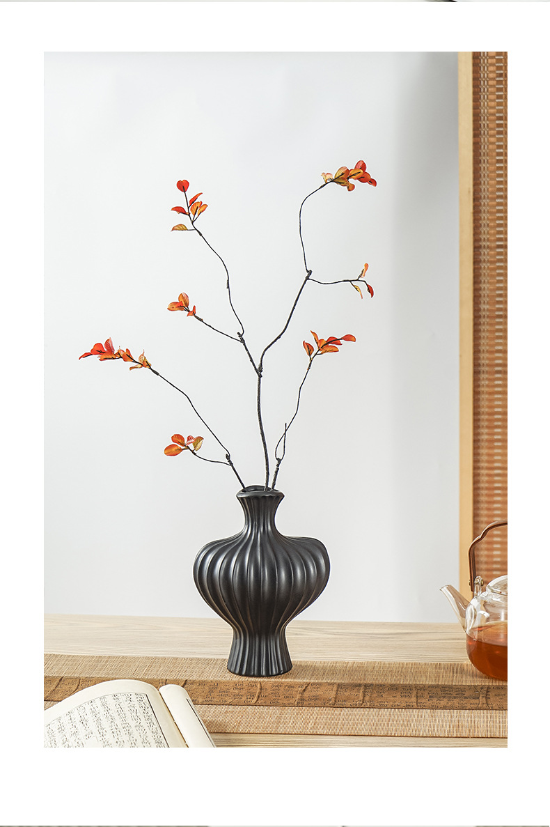 • 키가 큰 배 꽃병(23cm) - 매트 블랙 + 작은 단풍잎