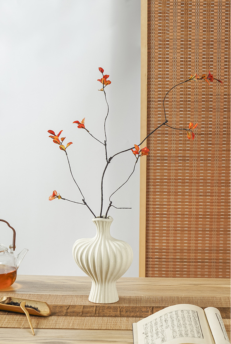 • 키가 큰 배 꽃병(23cm) - 매트 화이트 + 작은 단풍잎