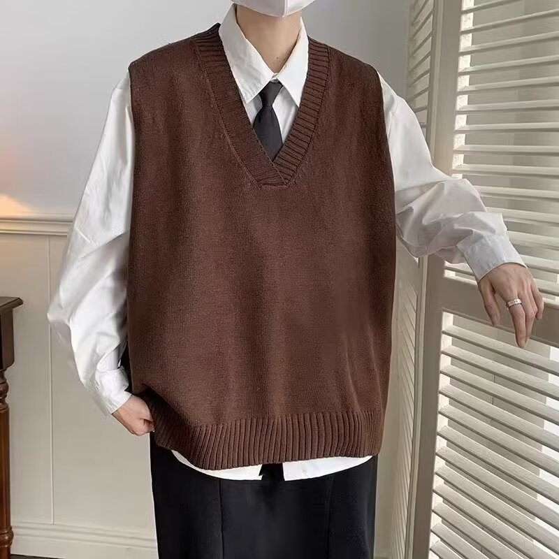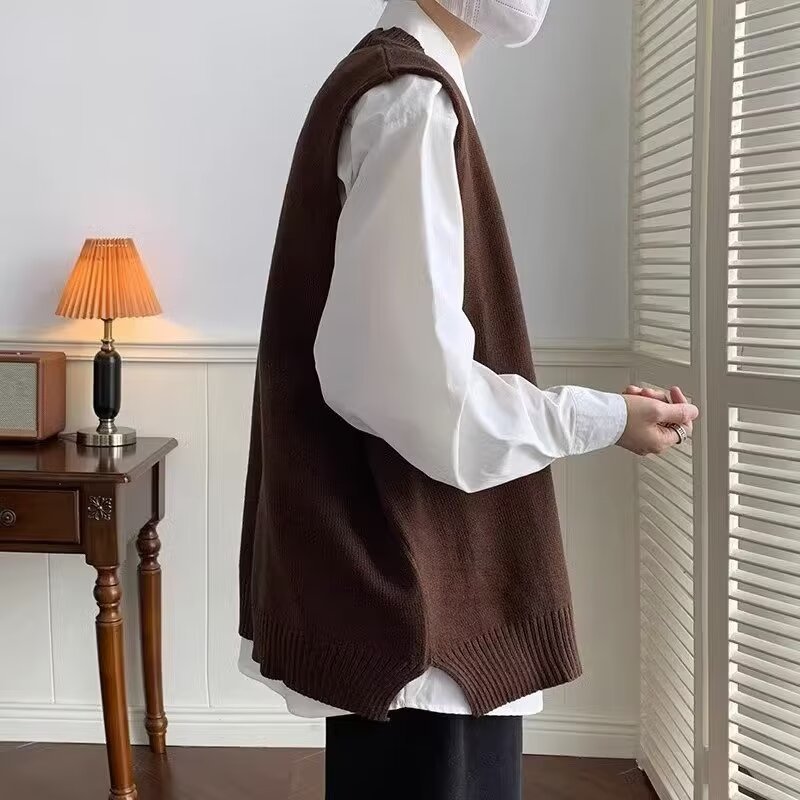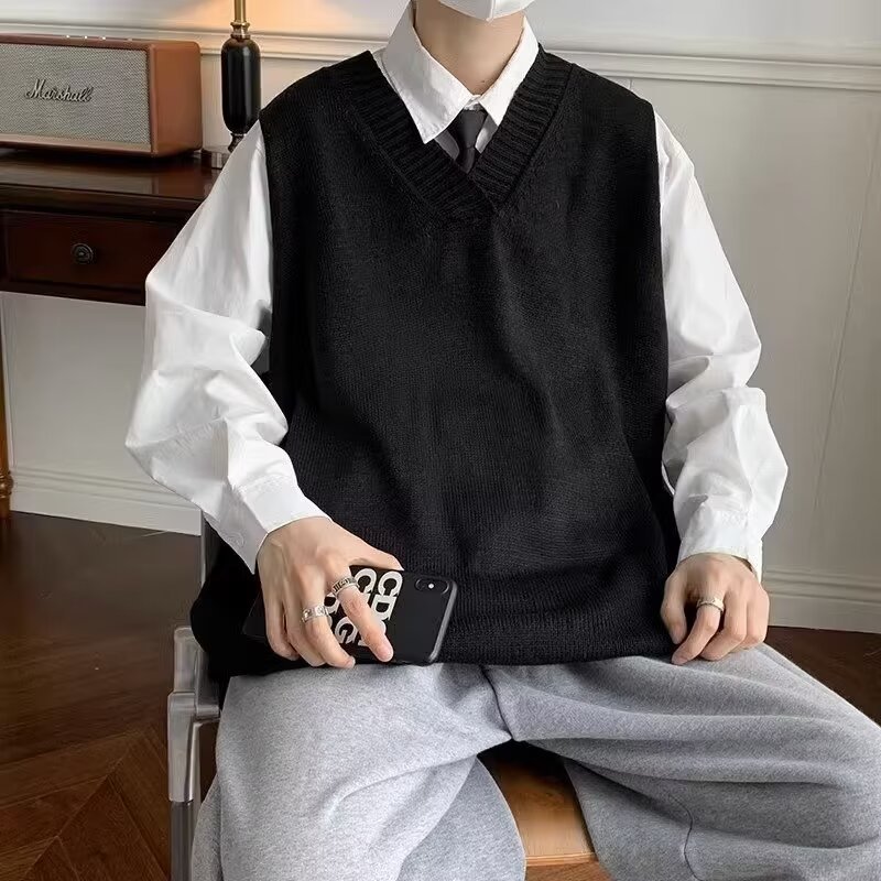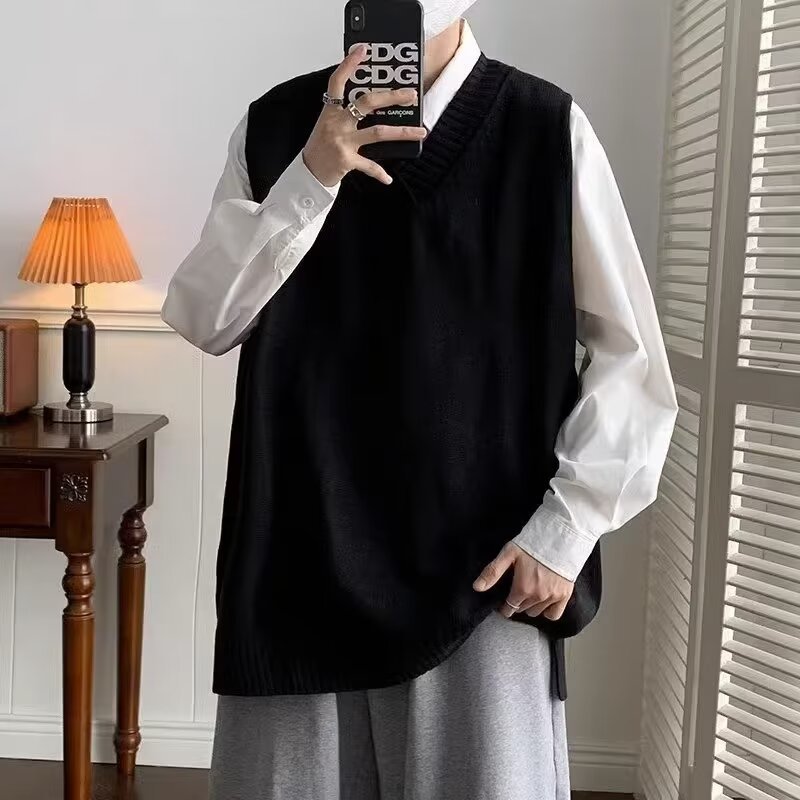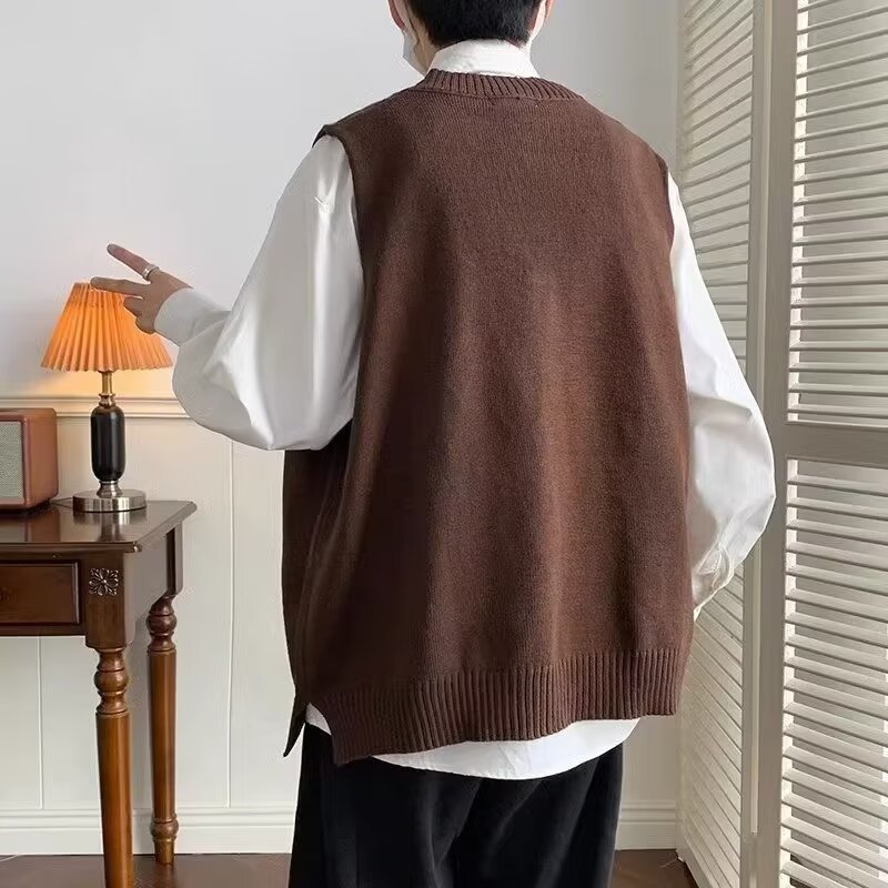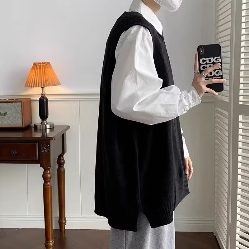 솔리드 컬러 V 넥 스웨터 조끼 스웨터 남자 가을 느슨한 올매치 한국식 커플 트렌디 스플릿 조끼 재킷스토어 가기