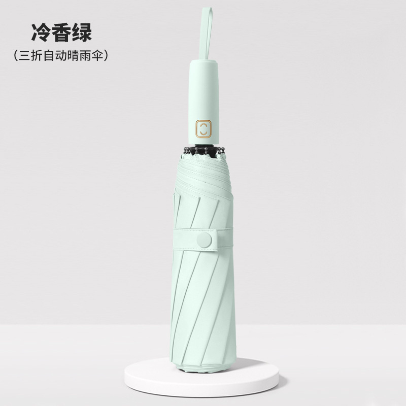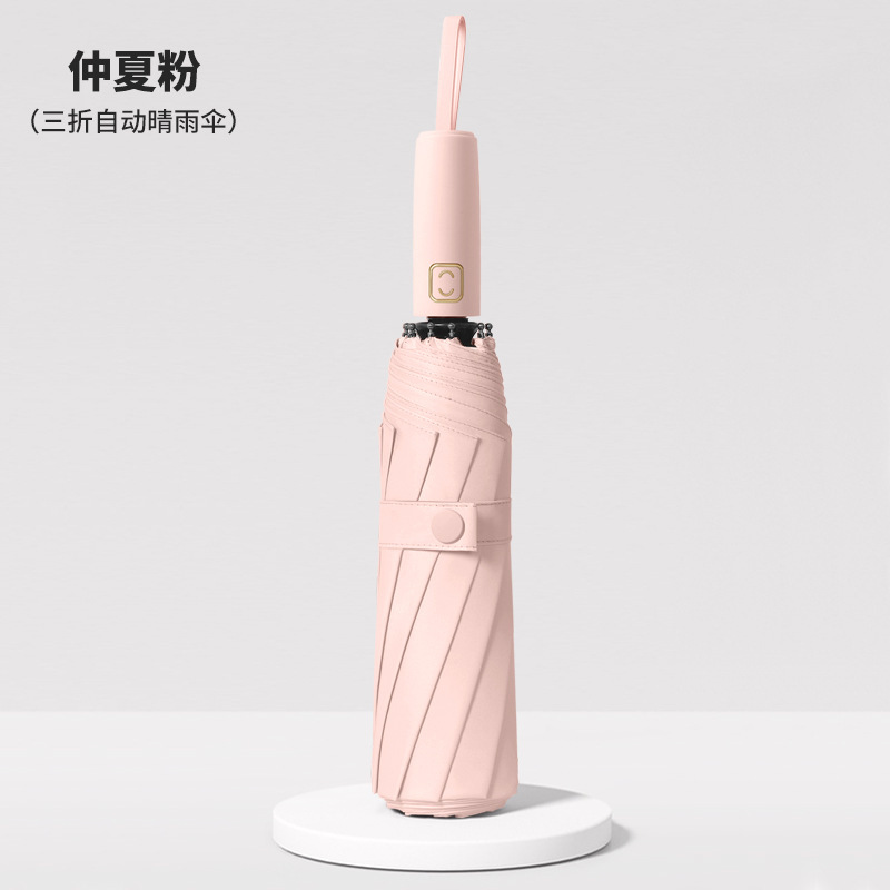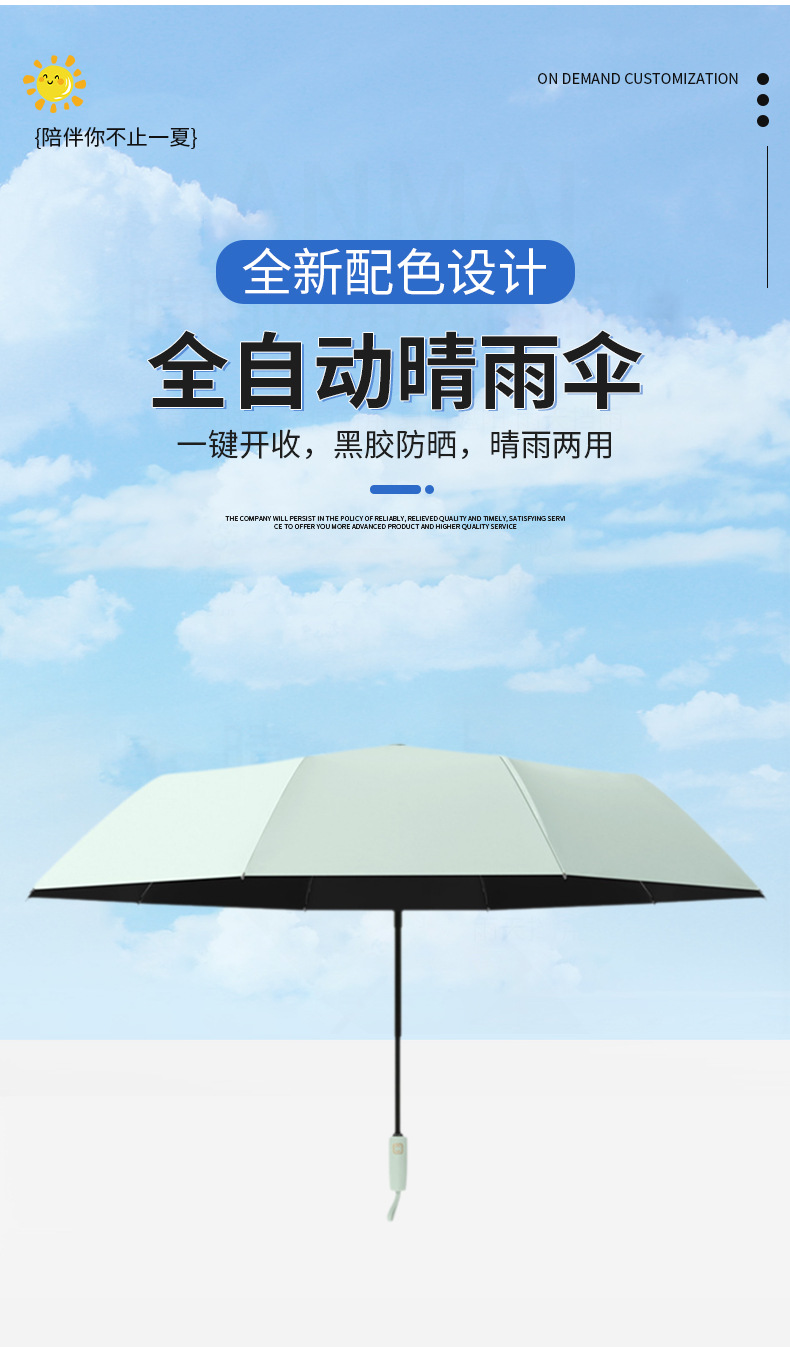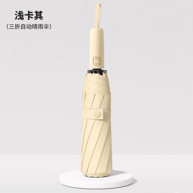 3 배 10 뼈 자동 우산은 Morandi 검은 색 고무 선 스크린 차양 우산 이중 사용 이중 레이어 보호 기능을 사용자 정의 할 수 있습니다.
