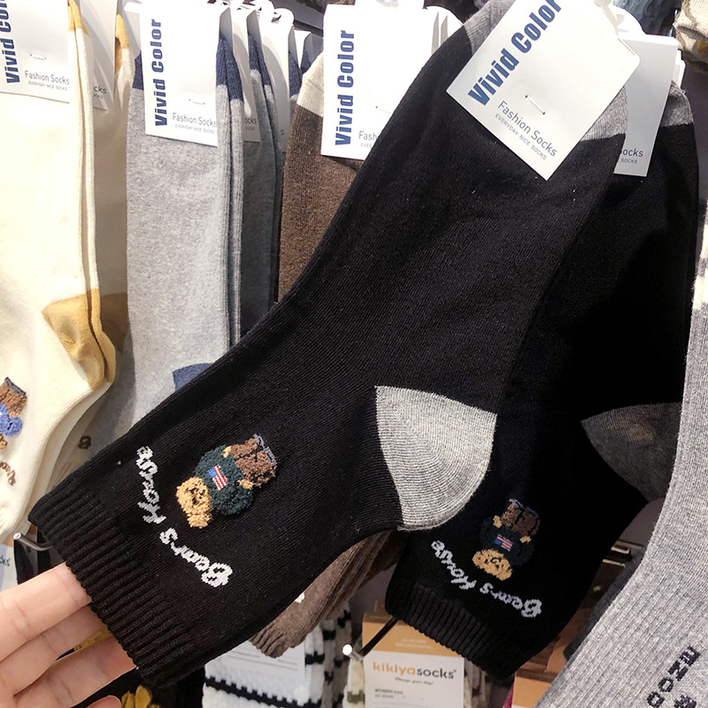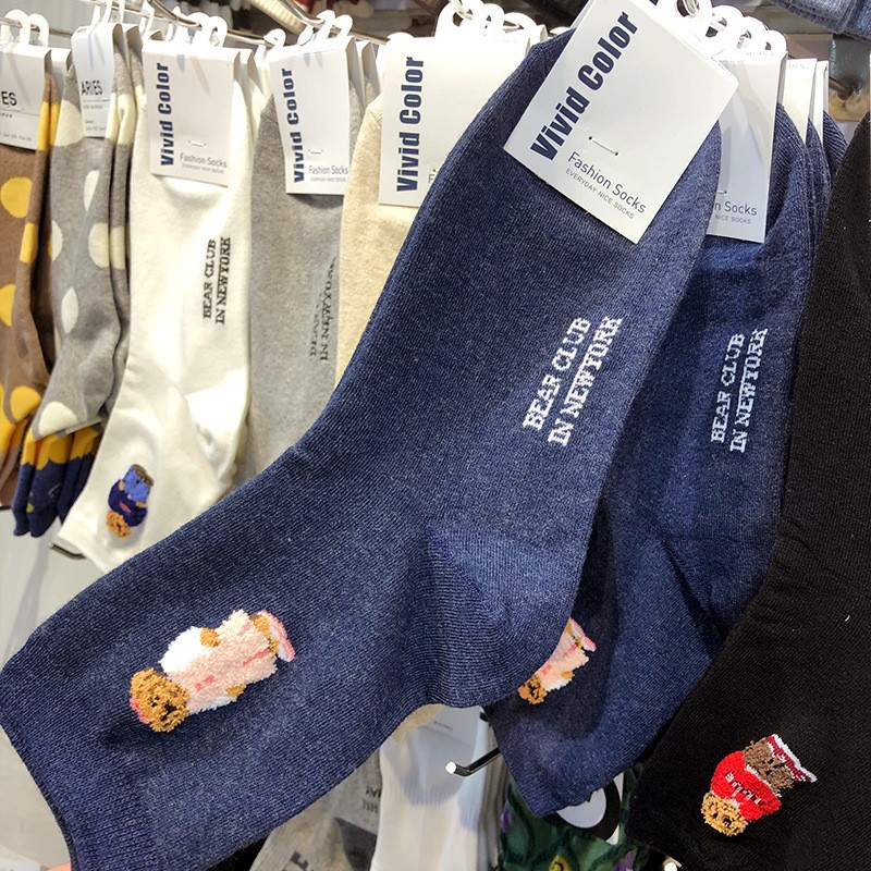 한국 수입 VIVID 가을과 겨울 새로운면 양말 일본 만화 곰 소녀 양말 컬러 매칭 양말스토어 가기