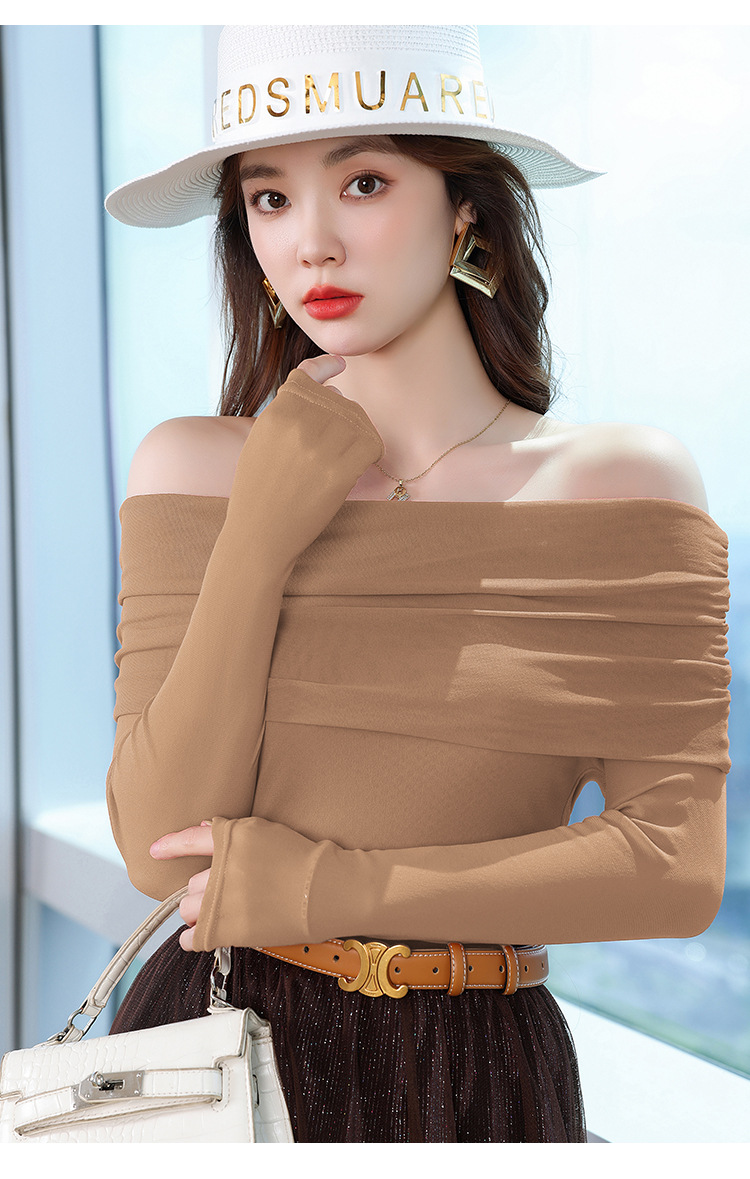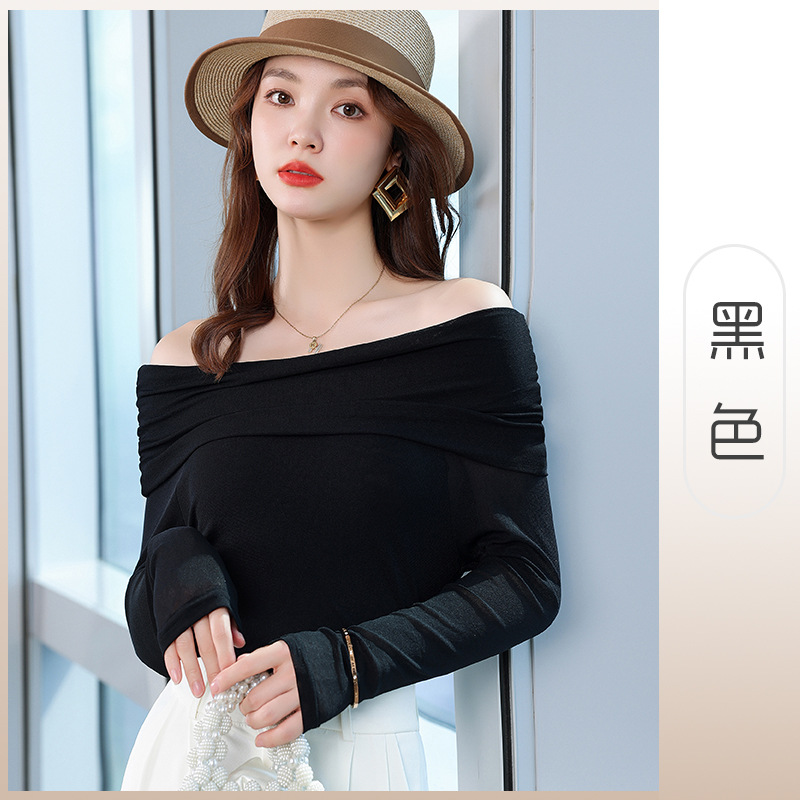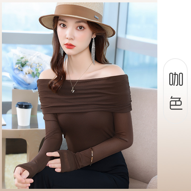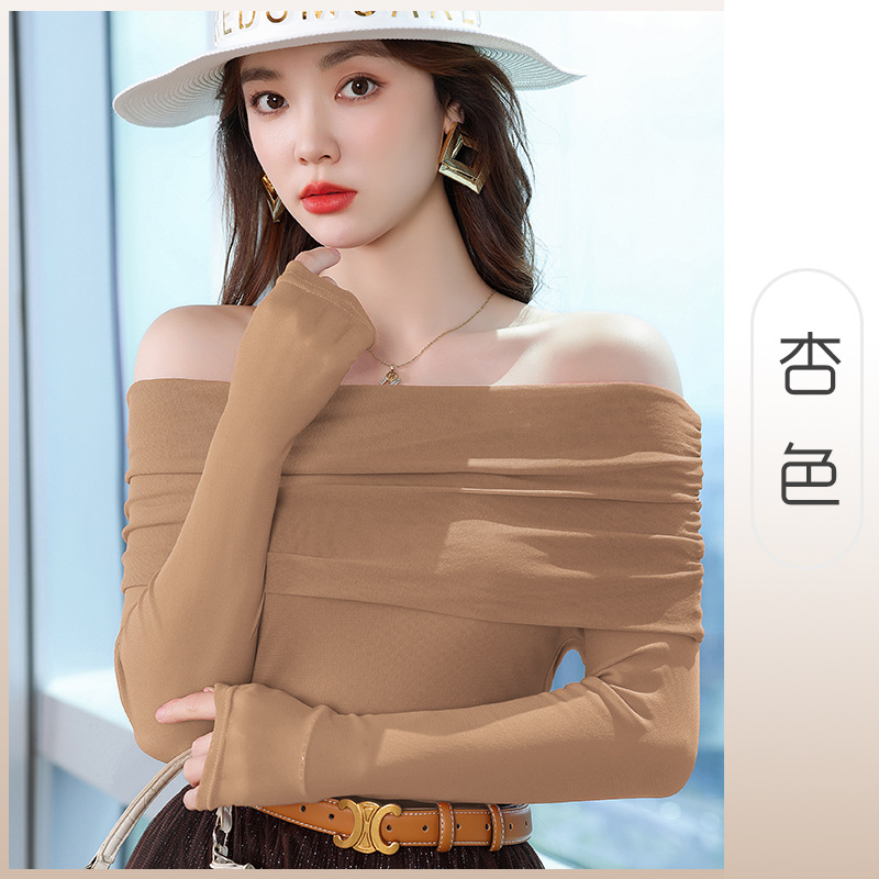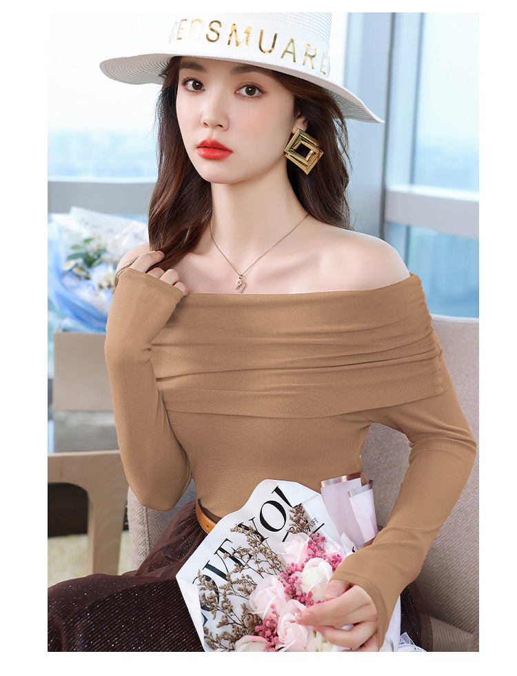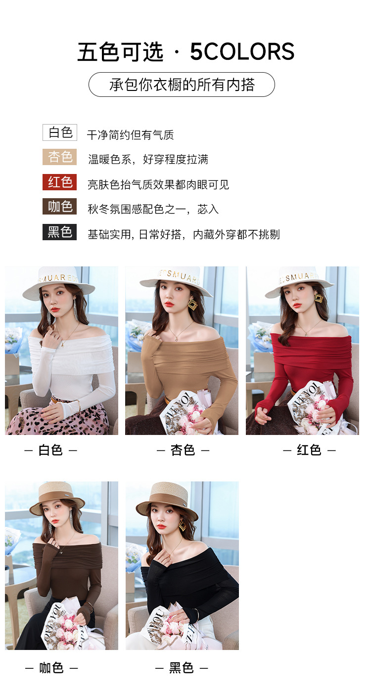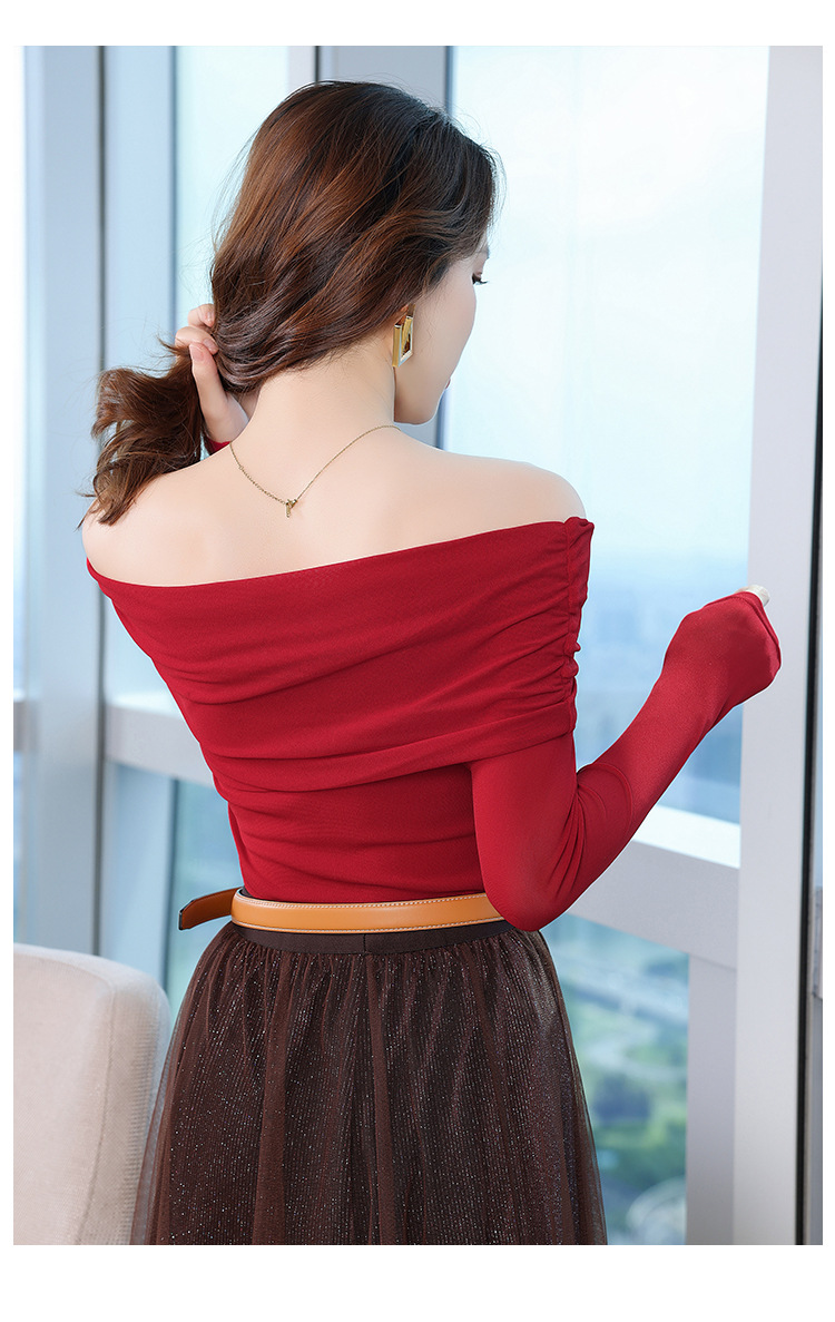 세븐 밸리 니앙 가을과 겨울 레드 탑 여자 하이 엔드 슬랜트 숄더 오프 숄더 긴팔 티셔츠 슬림 핏 짧은베이스 셔츠 트렌디스토어 가기