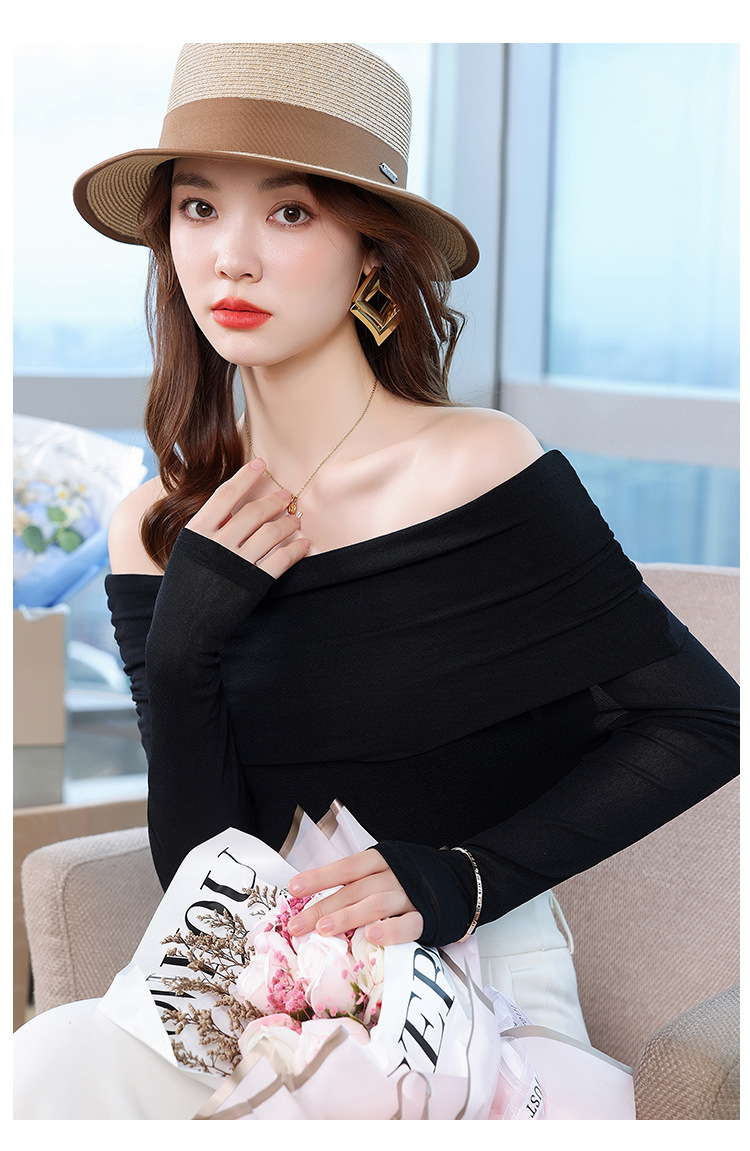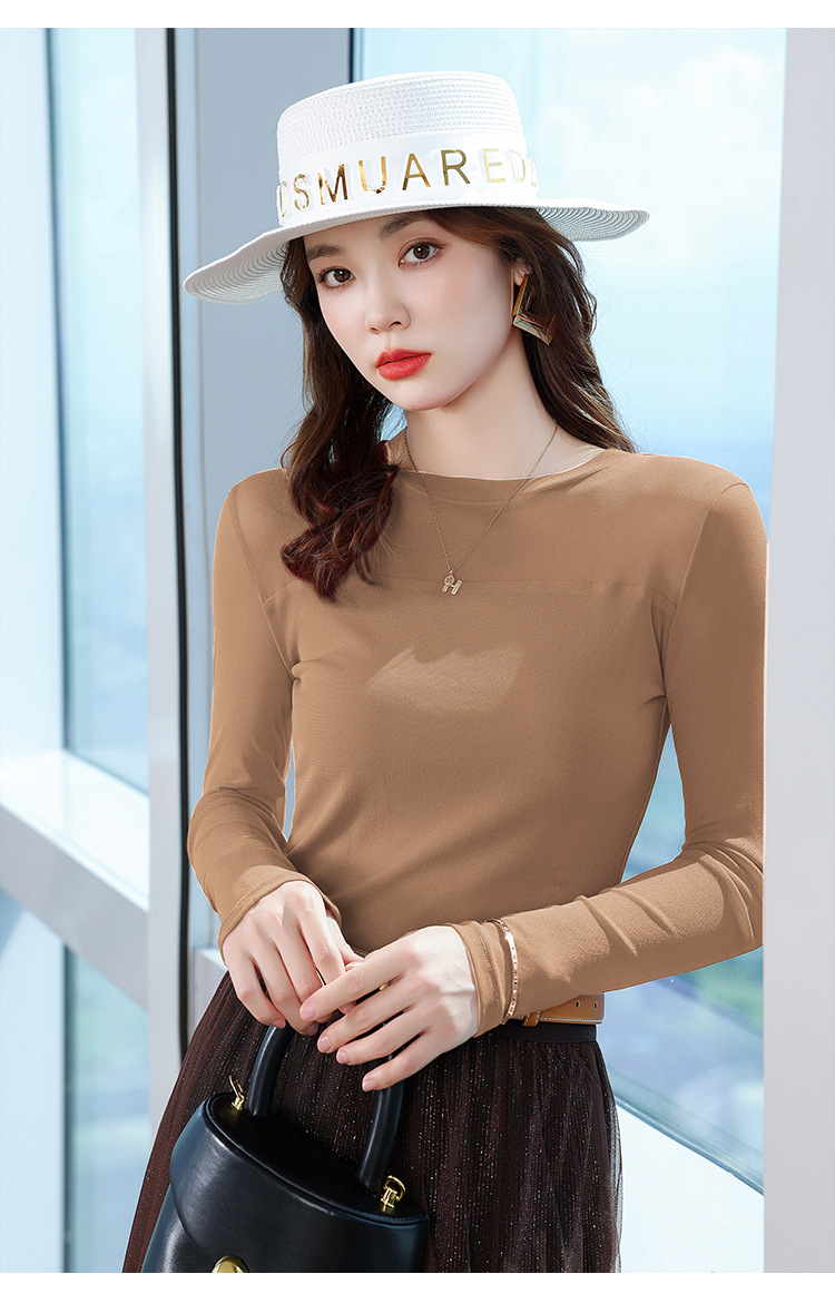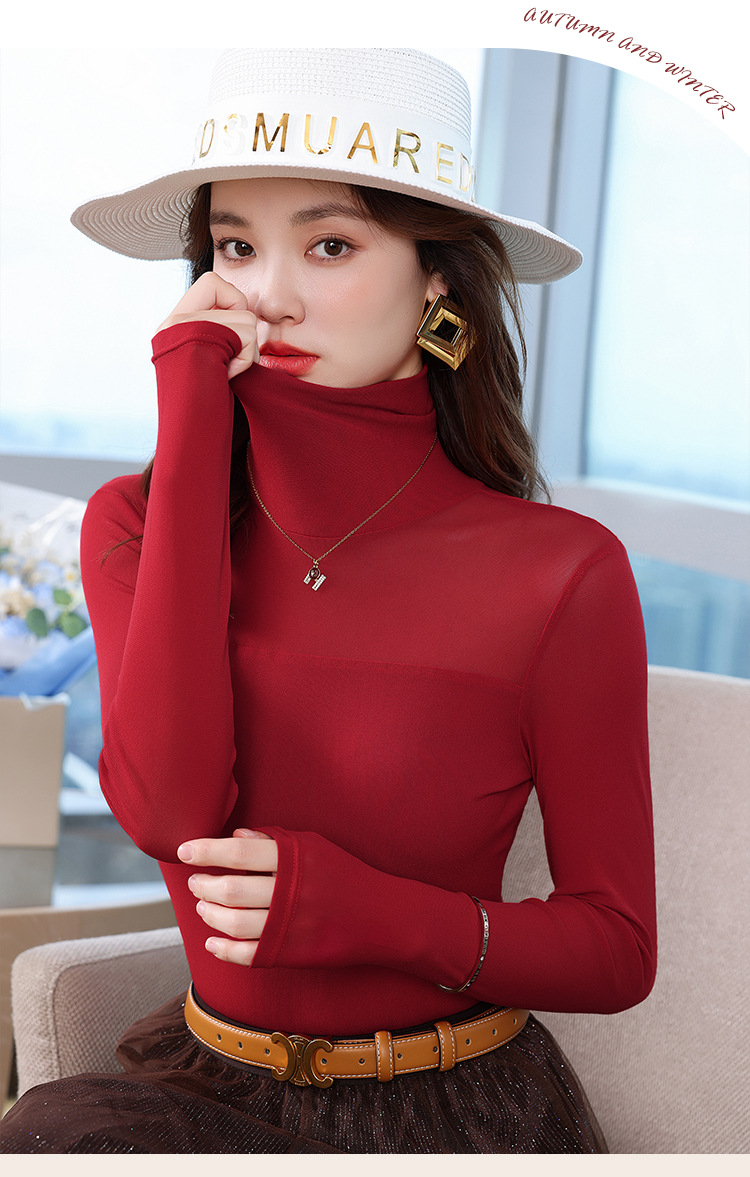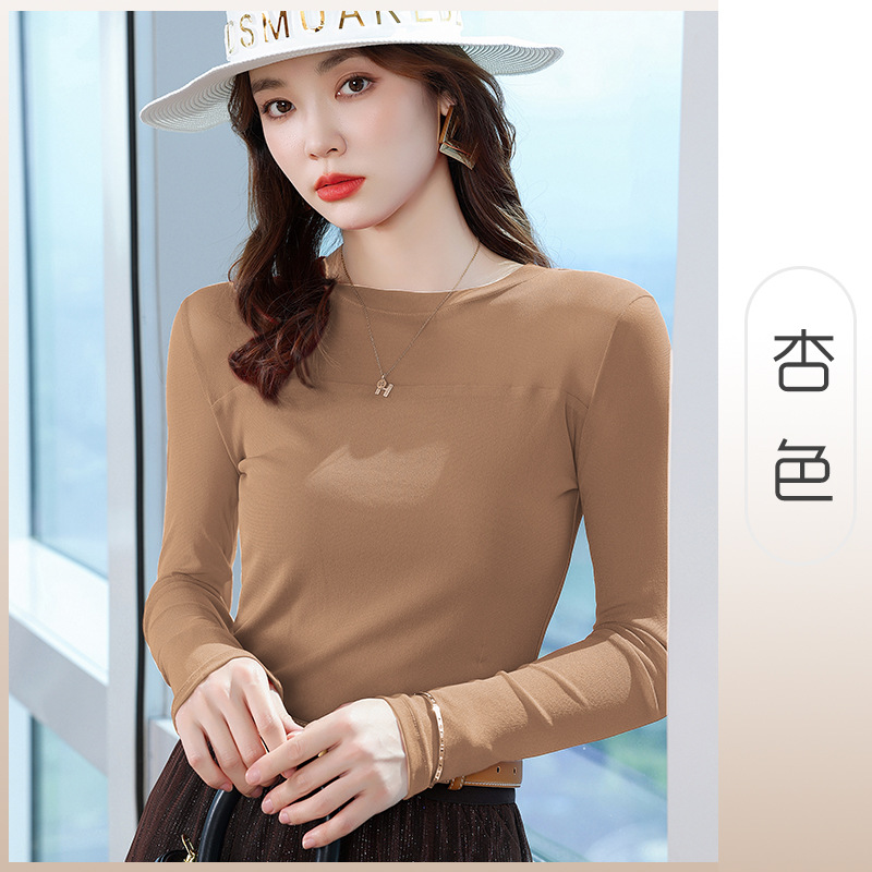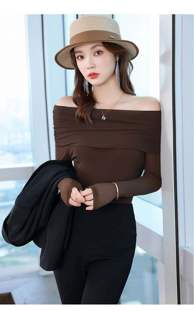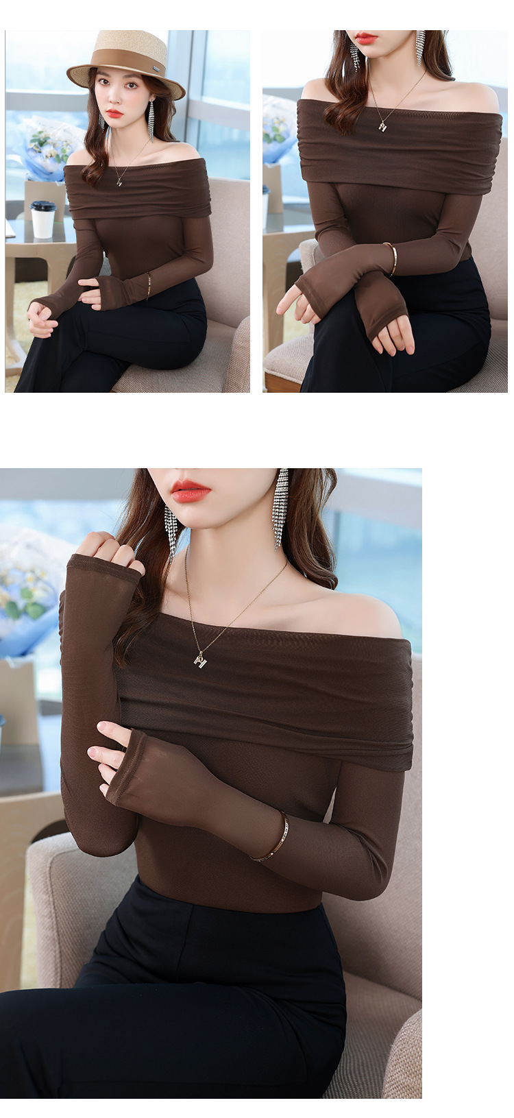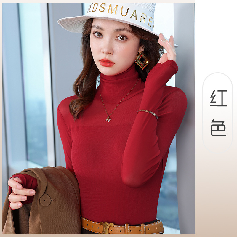 세븐 밸리 니앙 가을과 겨울 레드 탑 여자 하이 엔드 슬랜트 숄더 오프 숄더 긴팔 티셔츠 슬림 핏 짧은베이스 셔츠 트렌디스토어 가기