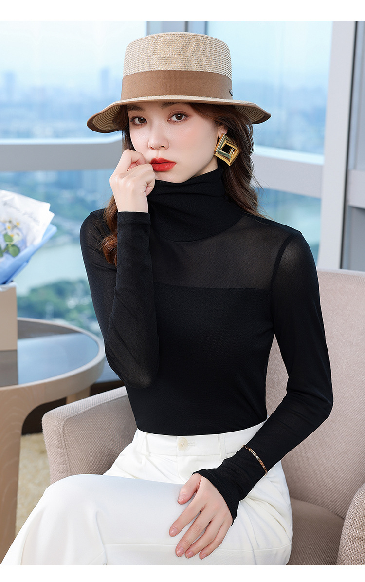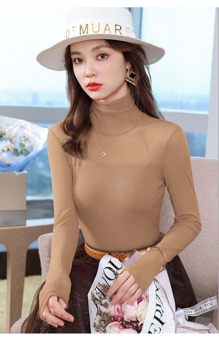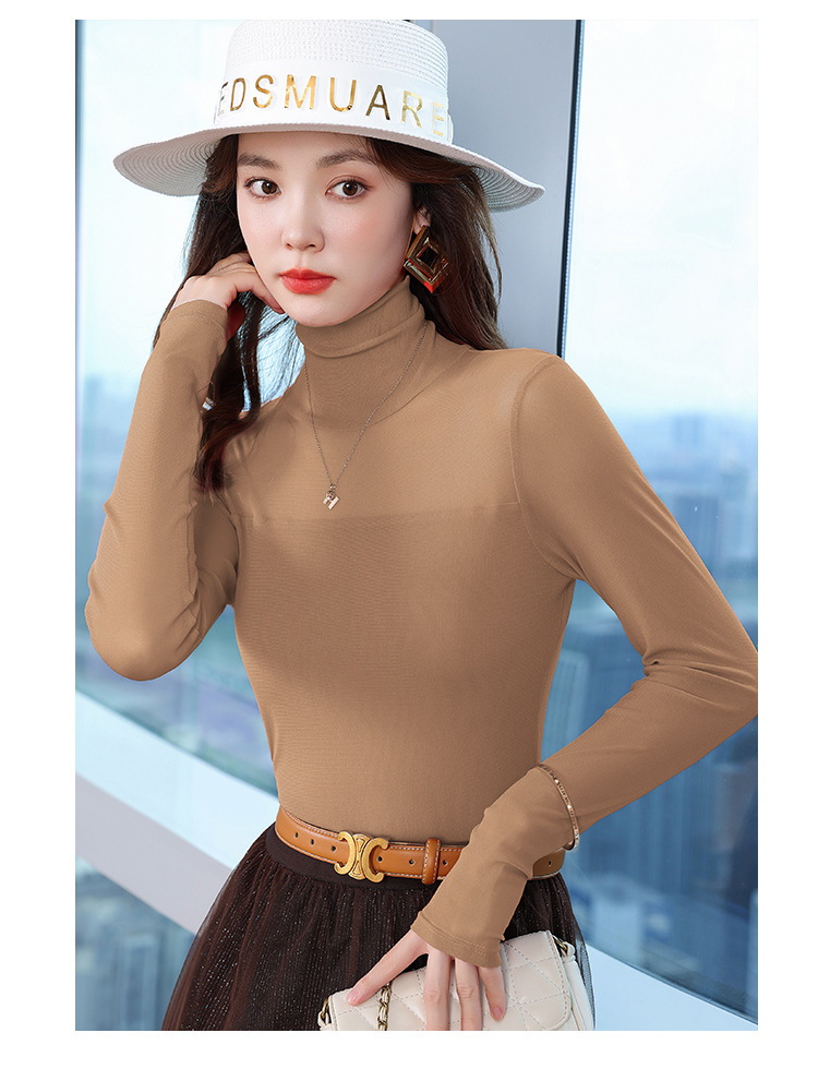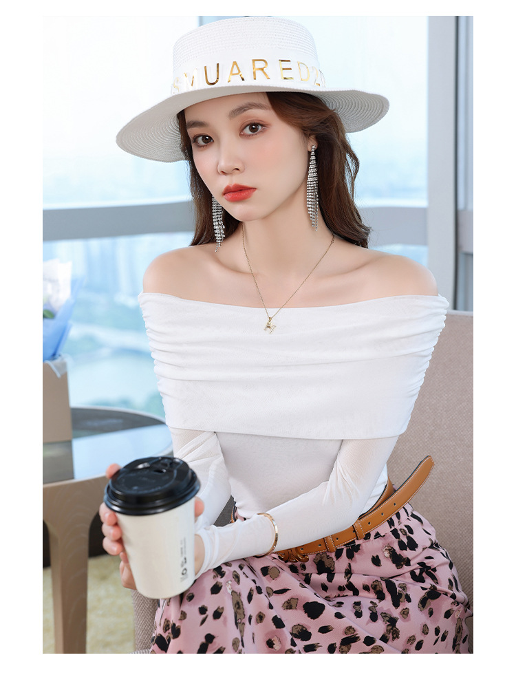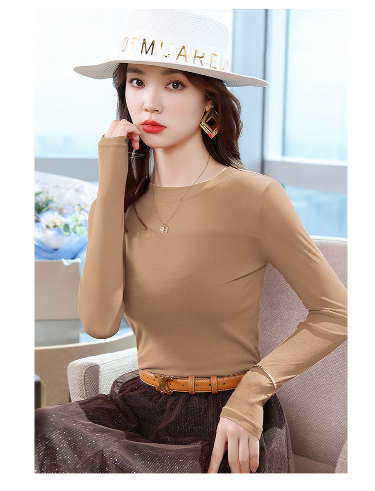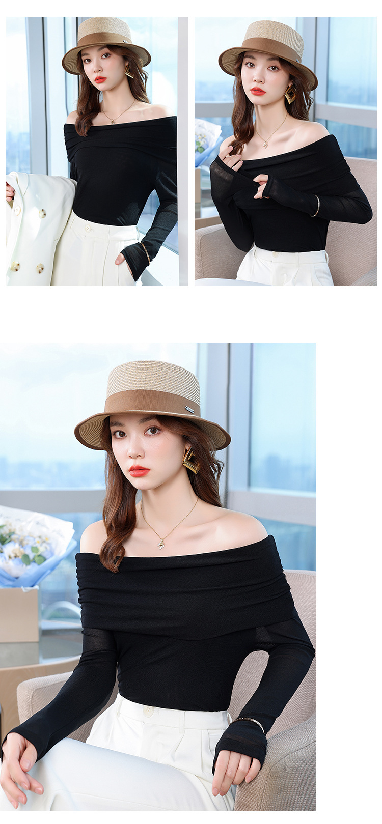 세븐 밸리 니앙 가을과 겨울 레드 탑 여자 하이 엔드 슬랜트 숄더 오프 숄더 긴팔 티셔츠 슬림 핏 짧은베이스 셔츠 트렌디스토어 가기