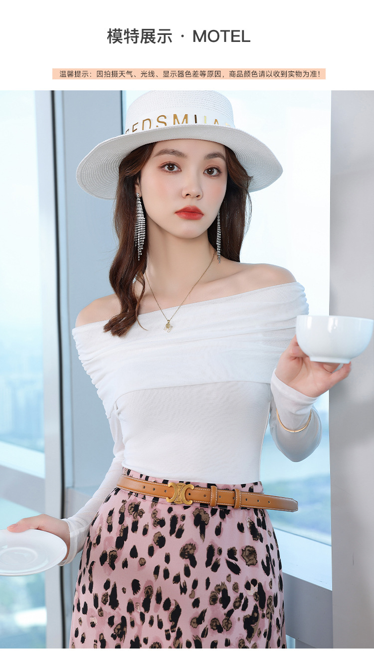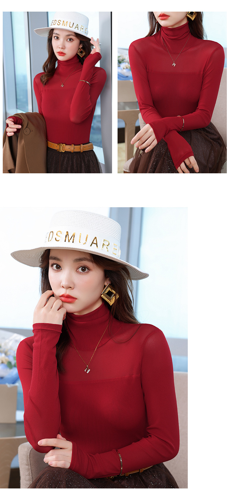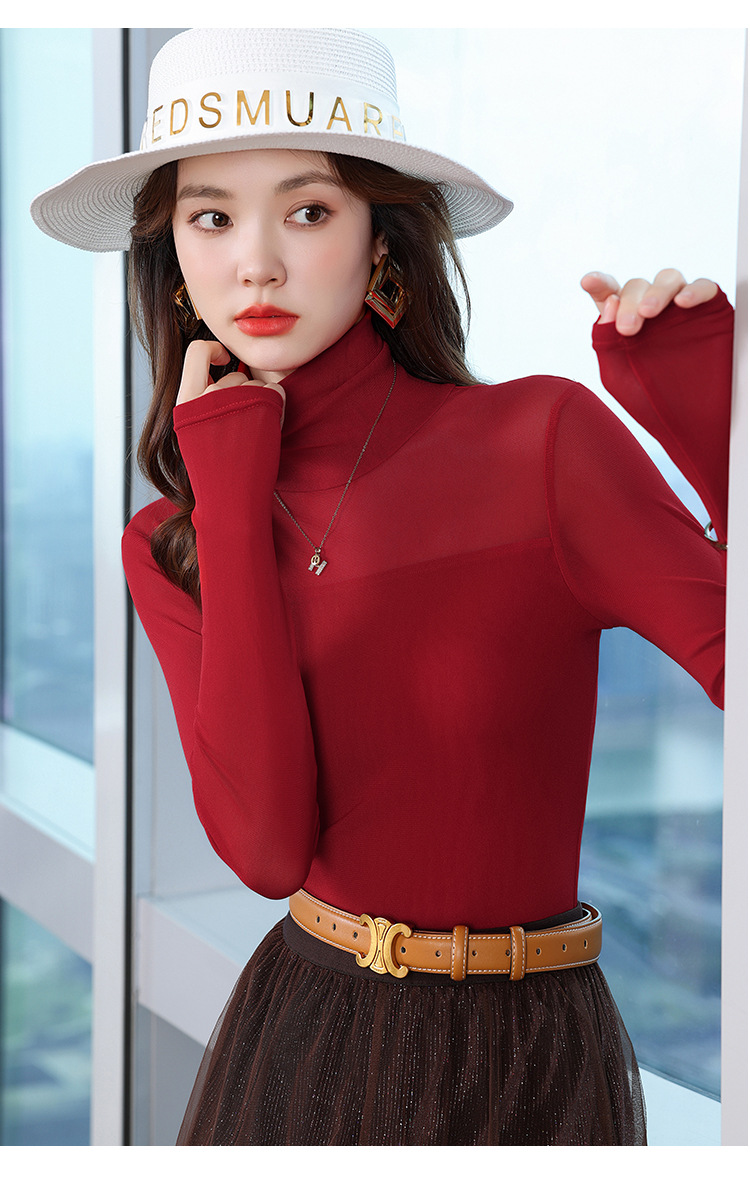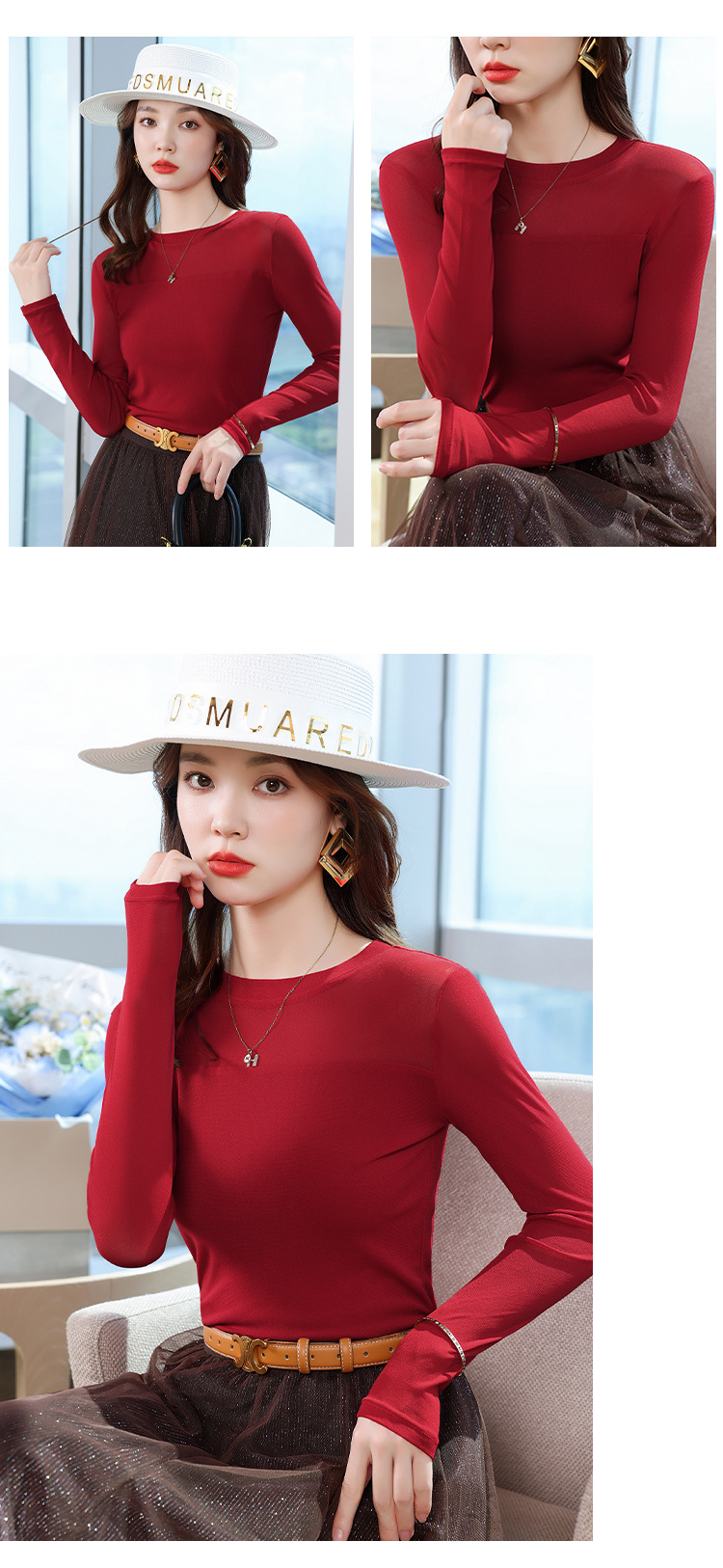 세븐 밸리 니앙 가을과 겨울 레드 탑 여자 하이 엔드 슬랜트 숄더 오프 숄더 긴팔 티셔츠 슬림 핏 짧은베이스 셔츠 트렌디