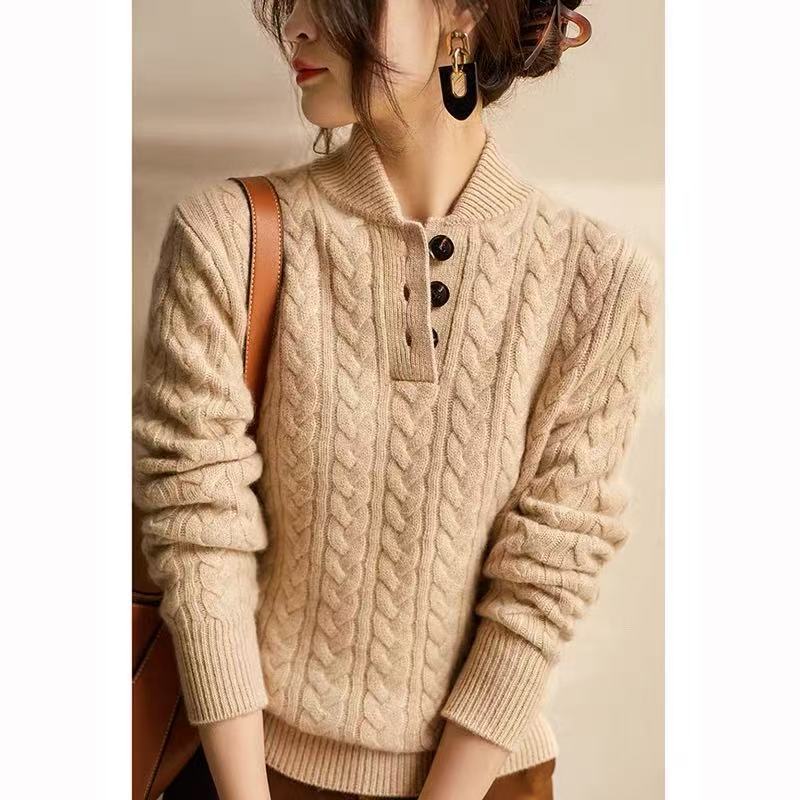 샤오샹풍 니트 가디건 자켓 2025 가을 겨울 신상 유럽풍 여성복 두꺼운 스탠드 칼라 베이스 스웨터