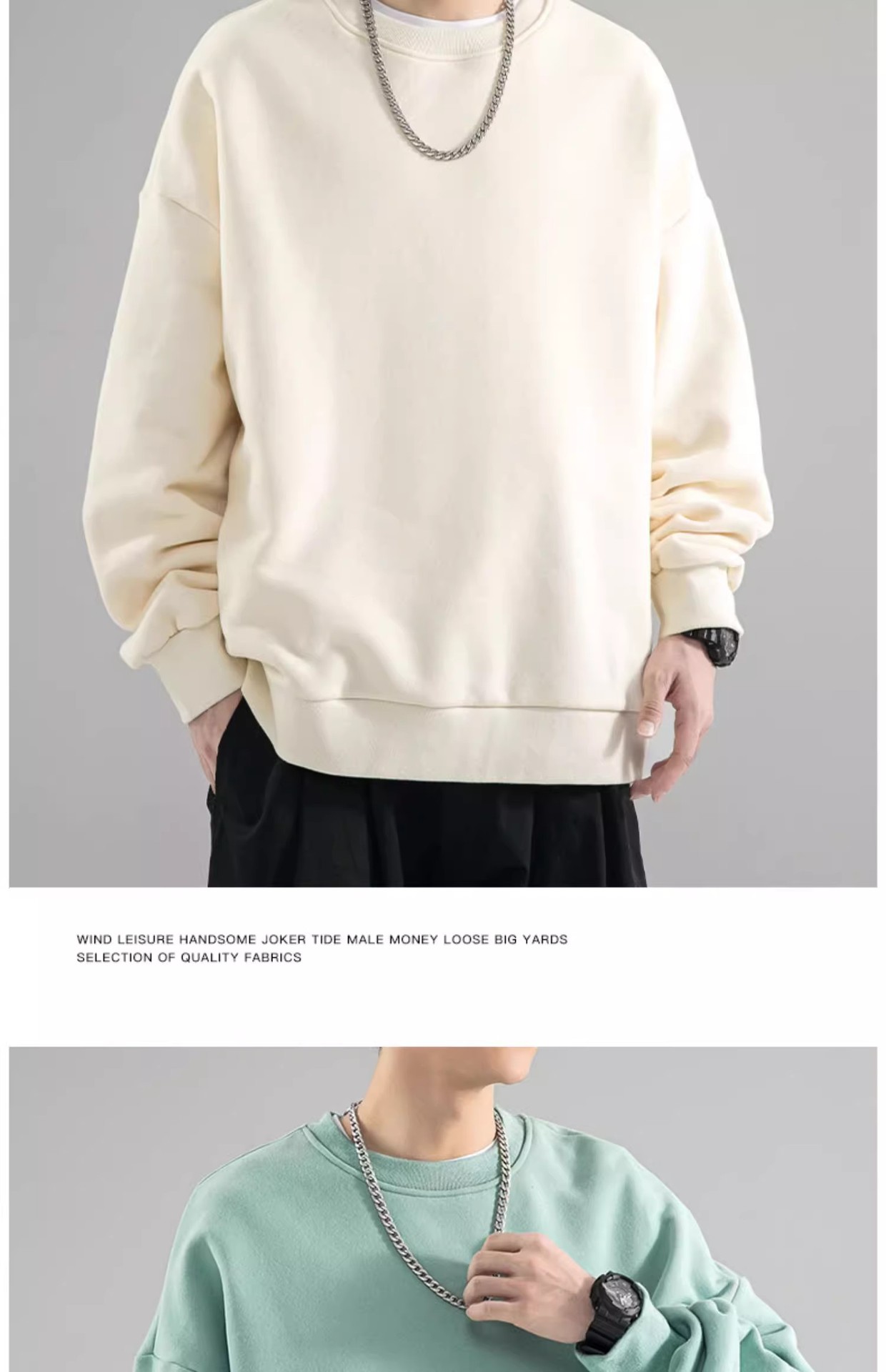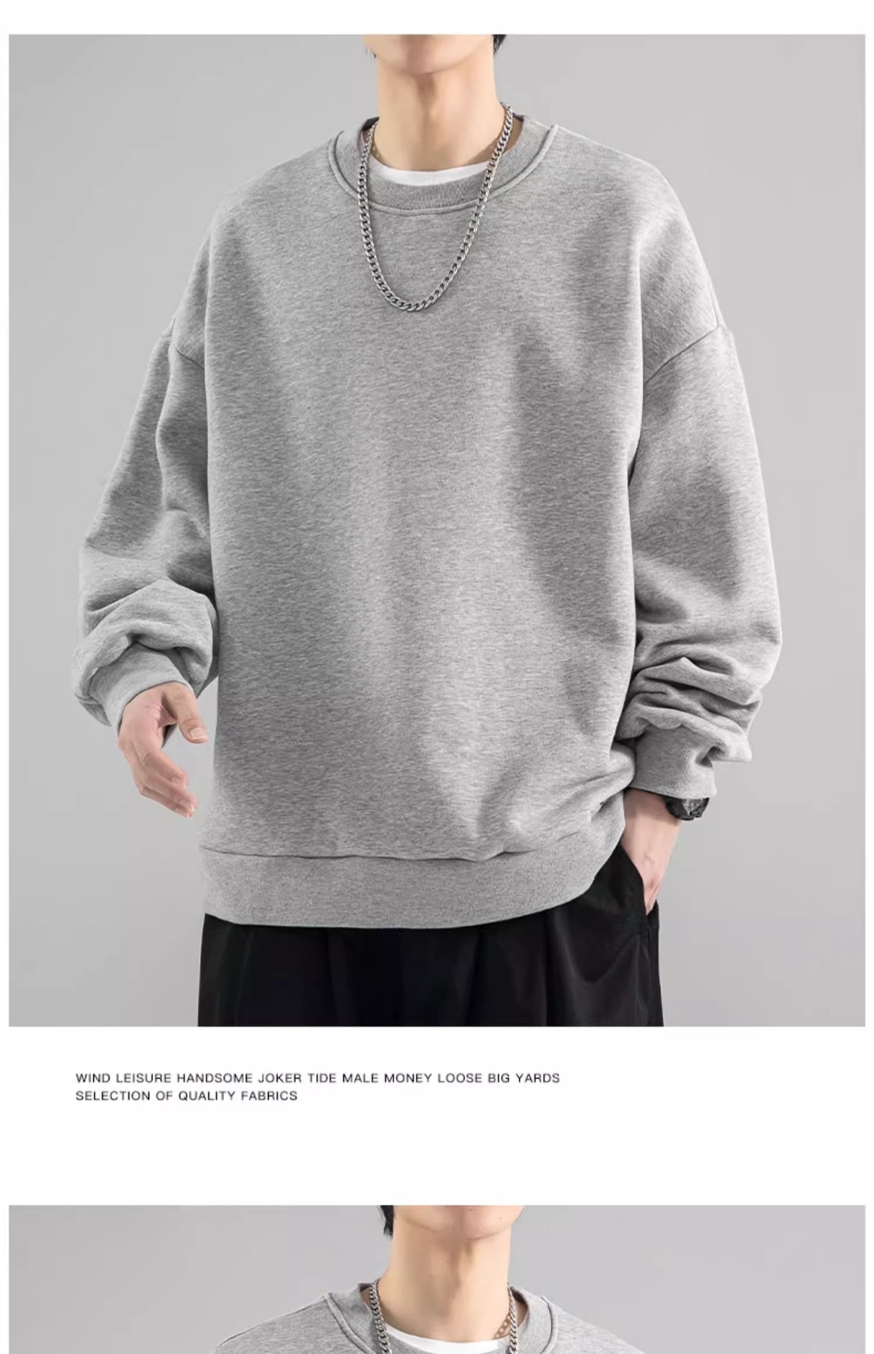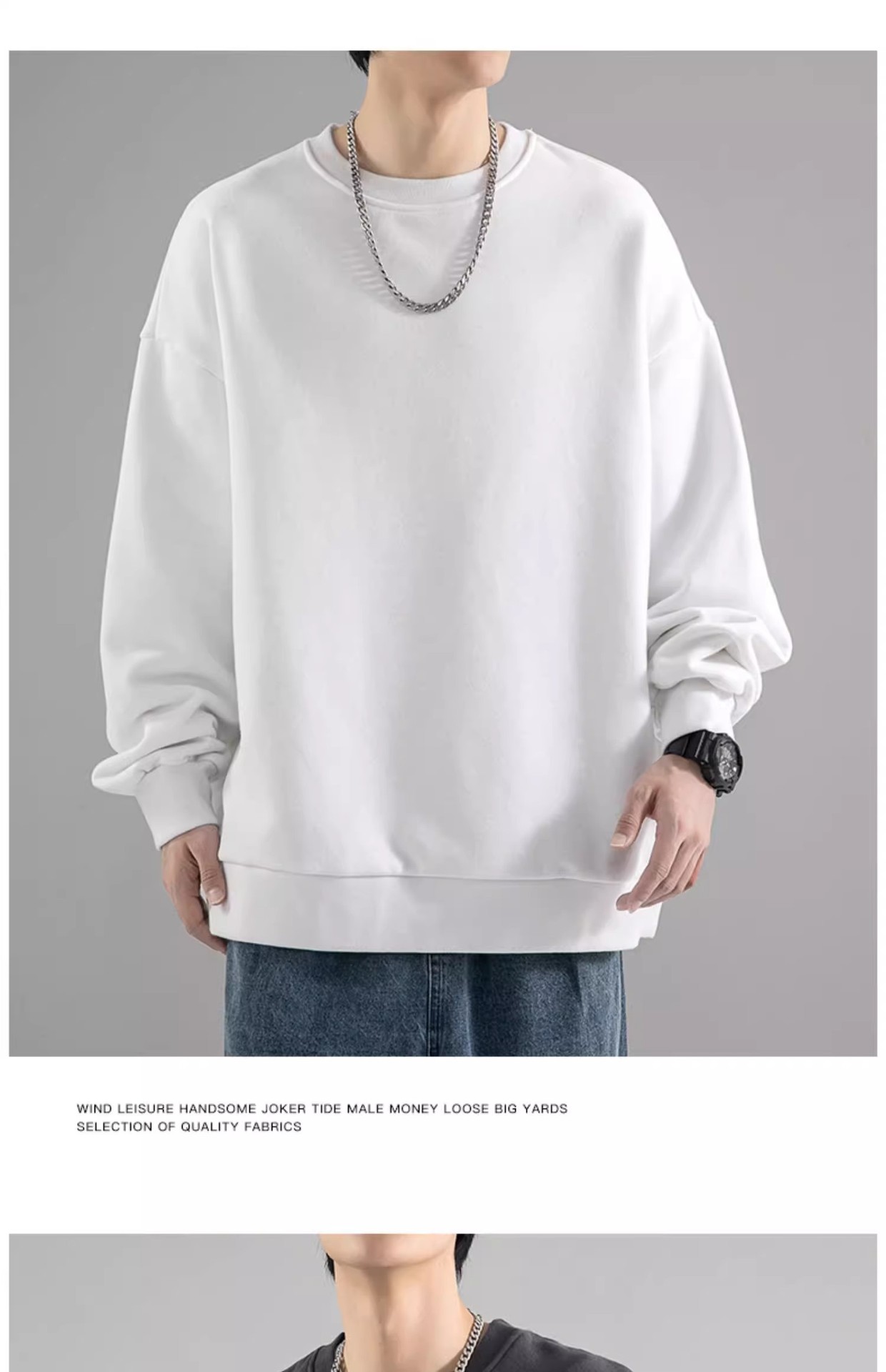 땀 남자 2024 새로운 봄과 가을 느슨한 크루 넥 옷 패션 브랜드 가을과 겨울 소년 미국 무거운 긴 소매