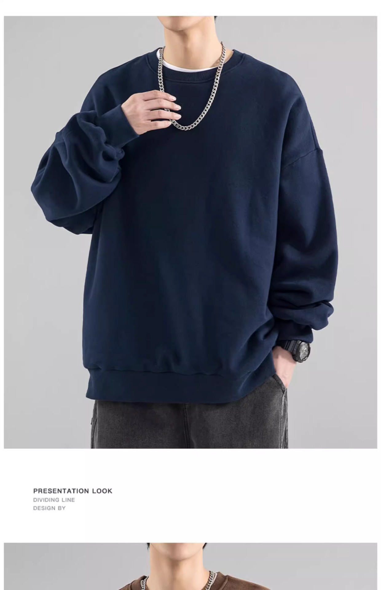 땀 남자 2024 새로운 봄과 가을 느슨한 크루 넥 옷 패션 브랜드 가을과 겨울 소년 미국 무거운 긴 소매스토어 가기