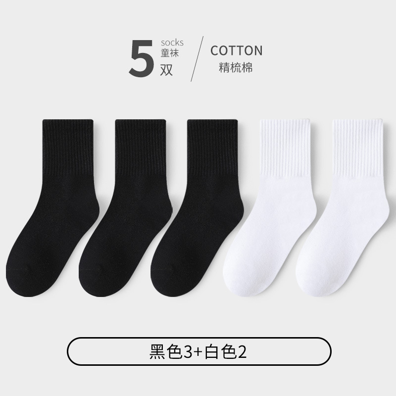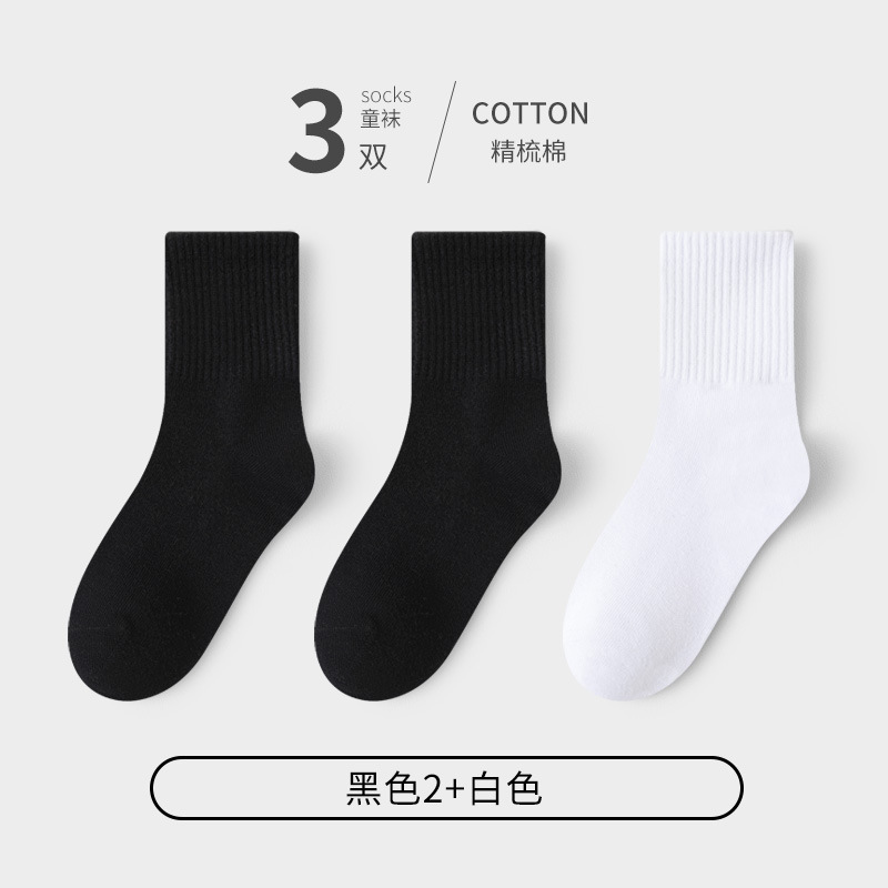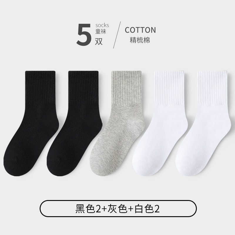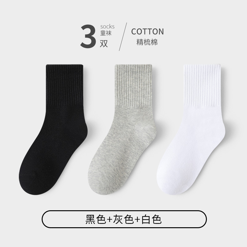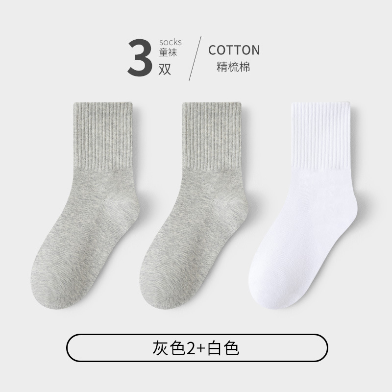 어린이 양말 봄과 가을 잘 느슨한 면화 학생 소년 소녀 어린이 통기성 순수한 흰색 큰 어린이 가을과 겨울 대학 스타일