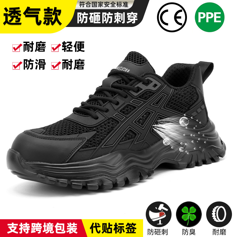 딩구 국경 안전 신발 제조 업체 도매 통기성 내마모성 플라이 짠 노동 보호 신발 스매싱 방지 펑크 작업 신발 여성 CE스토어 가기