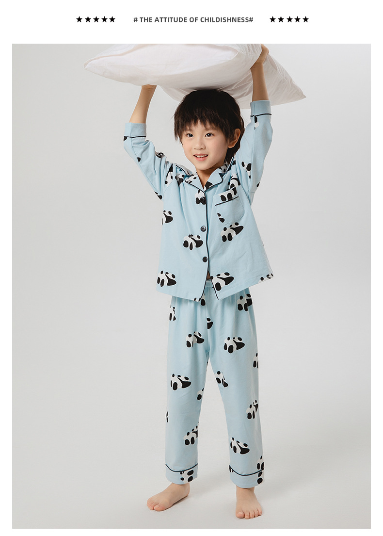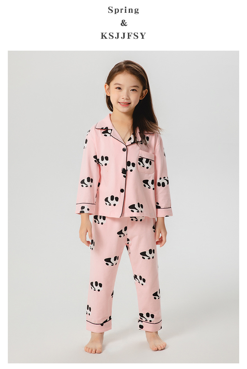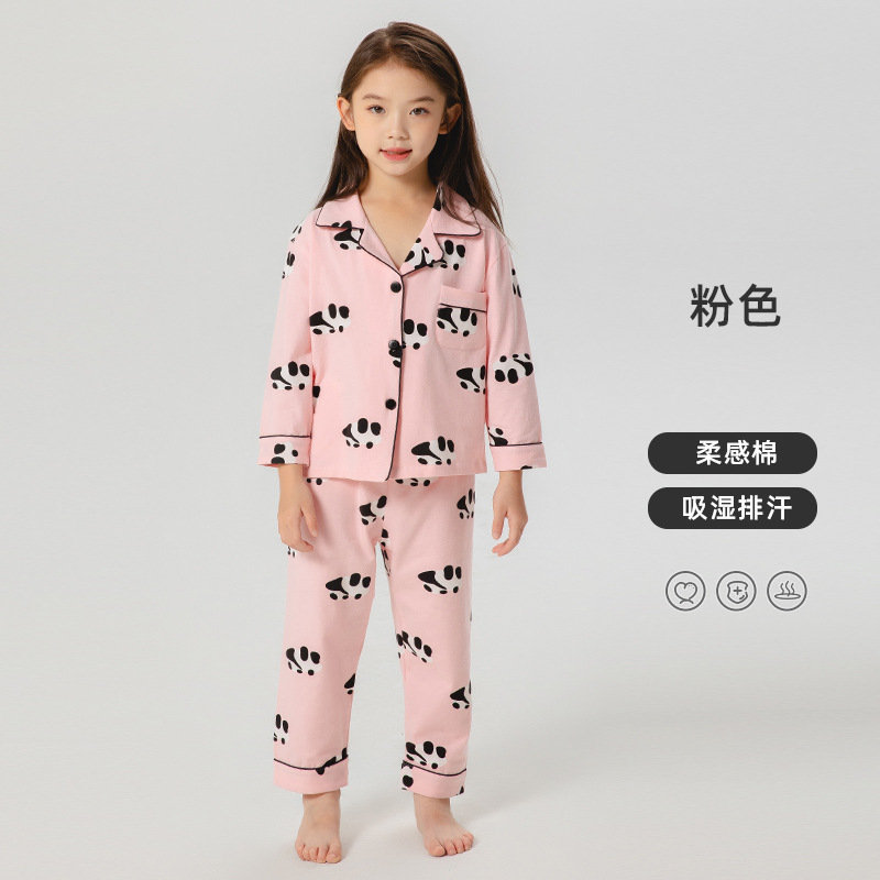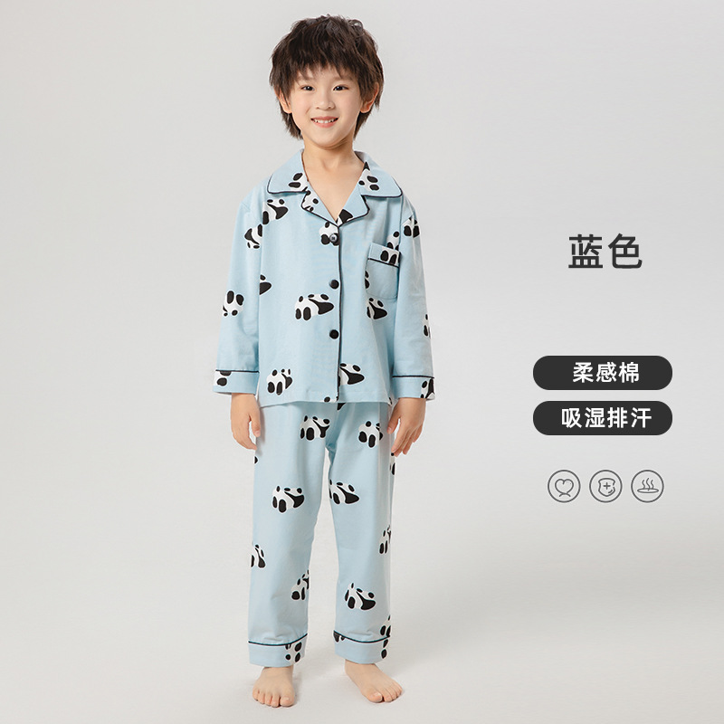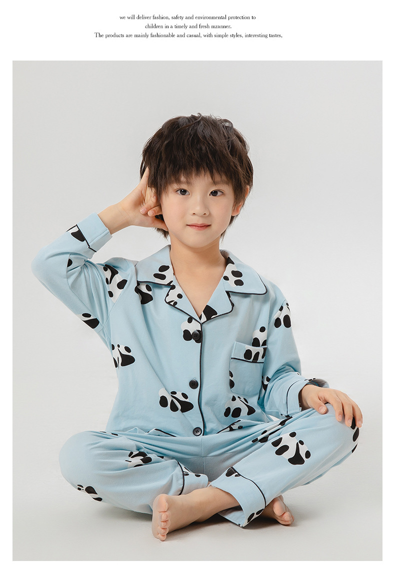 봄과 가을 새로운 어린이 잠옷 통기성 면화 어린이 가정 의류 카디건 세트 어린이 속옷 만화 긴 소매스토어 가기