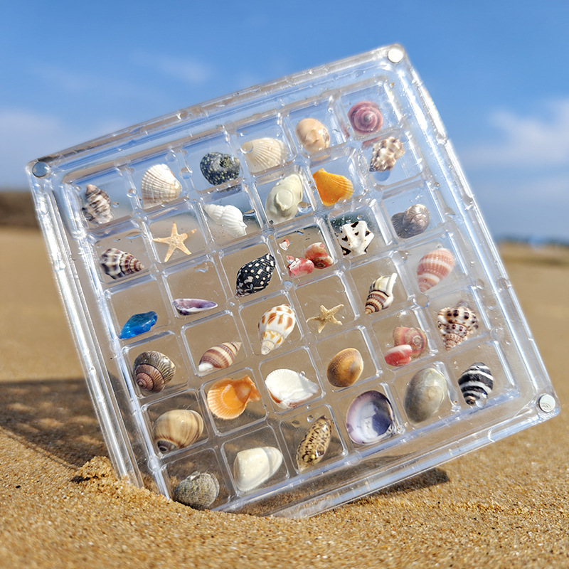 • 36 그리드 아크릴 상자와 소라 껍질, 소라 껍질은 약 0.5-1.5cm 작습니다!✓