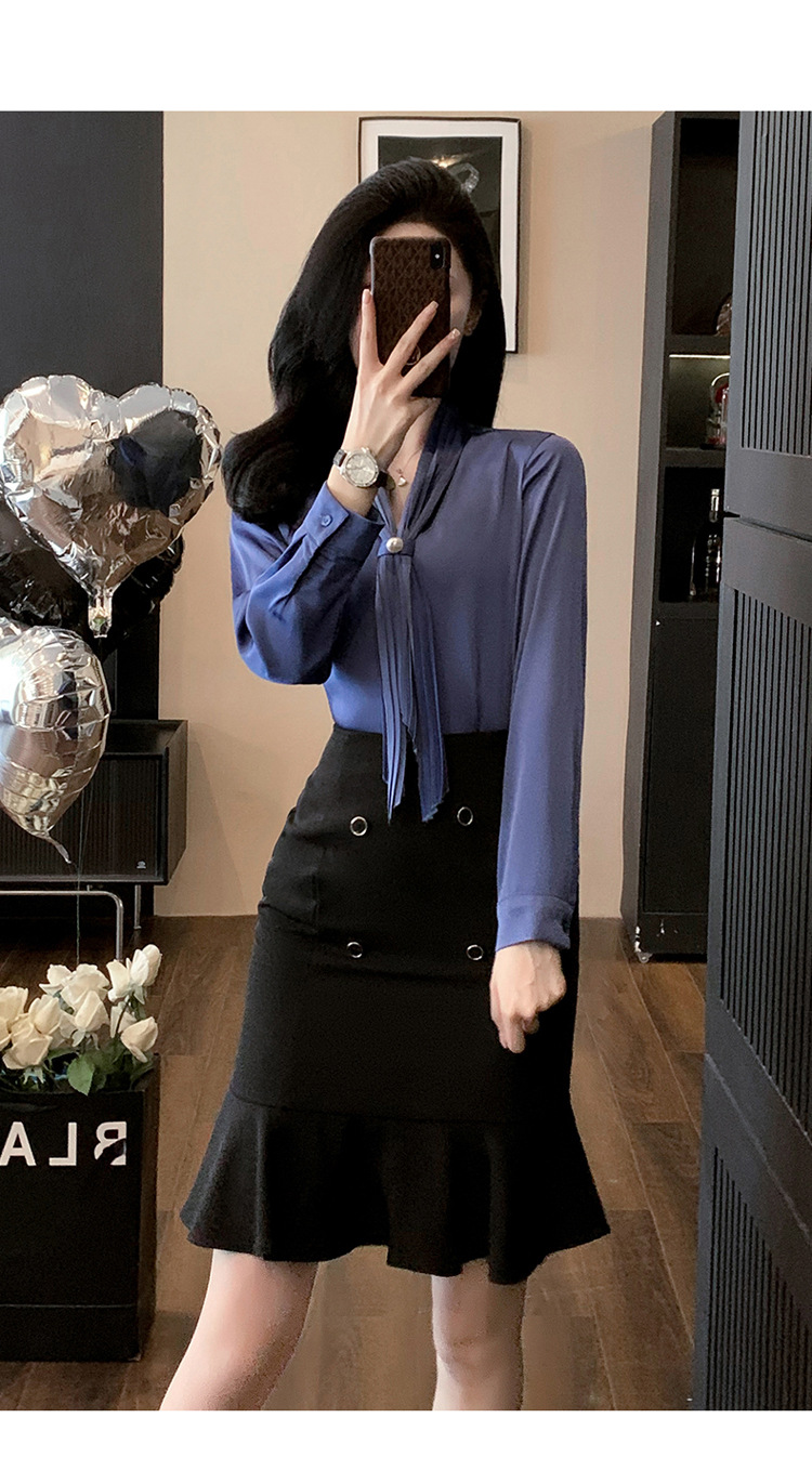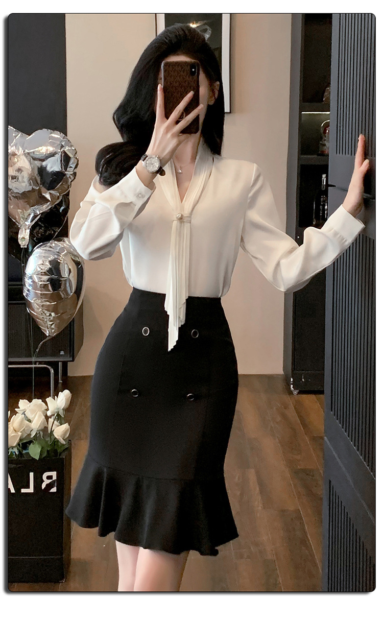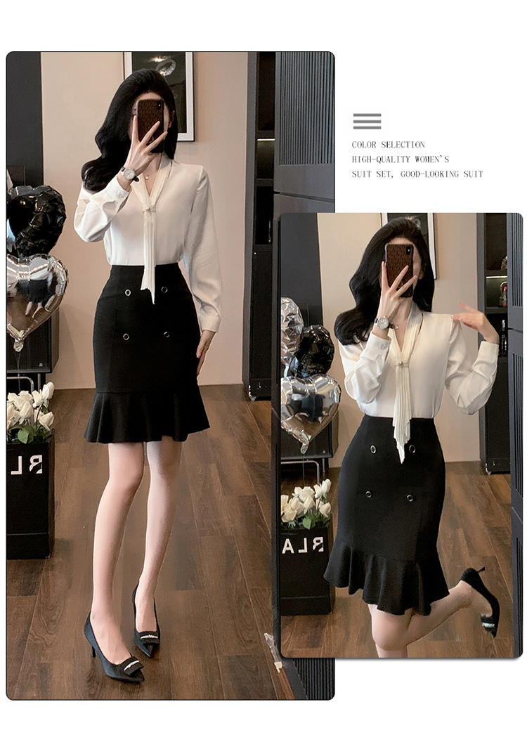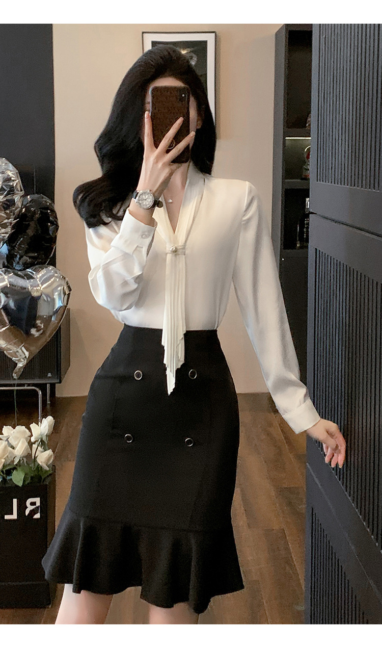 여성 스커트 봄과 가을 2024 새로운 우아한 러플 두꺼운 엉덩이 스커트 피쉬 스커트 긴 소매 셔츠 세트스토어 가기