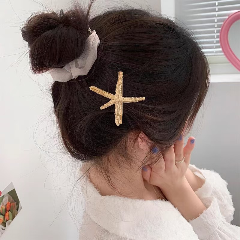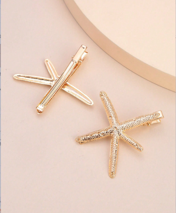 국경 간 전자 상거래 합금 불가사리 머리 장식 상단 클립 머리핀 성인 소녀 간단한 잎 복고풍 금속 오리 지폐 클립 배치스토어 가기