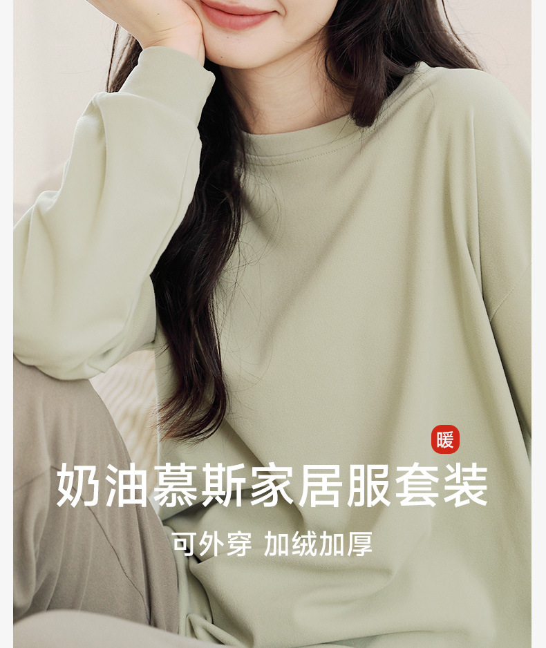 여성용 잠옷, 봄, 가을 긴팔 바지, 대형 사이즈, 겨울 벨벳 따뜻한 임산부 홈웨어 세트, 심플하고 캐주얼스토어 가기