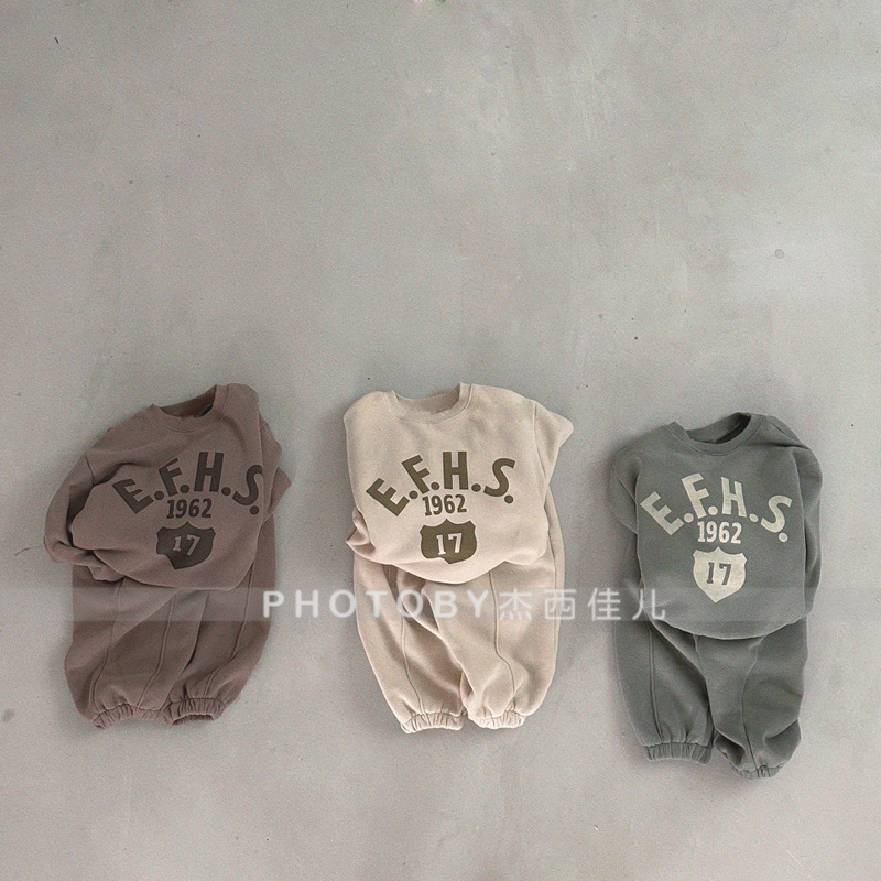 2024 아동복 아동복 한국식 가을과 겨울 세트 서양식 소년 소녀 편지 프린트 양털 스웨터 투피스 세트스토어 가기