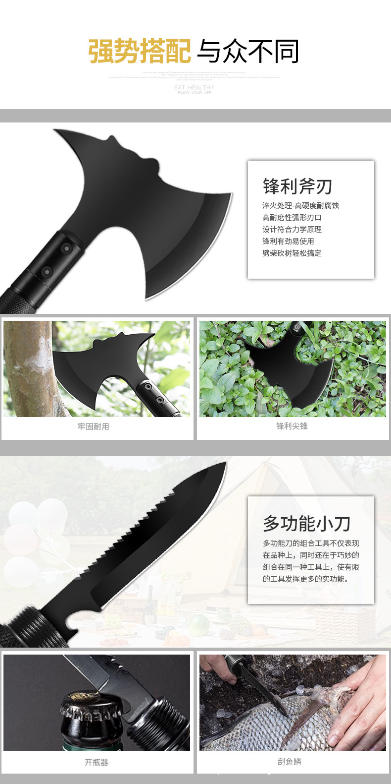 야외 다기능 도끼 캠핑 전술 도끼 나이프 산 절단 목재 절단 도끼 자동차 캠핑 도끼스토어 가기
