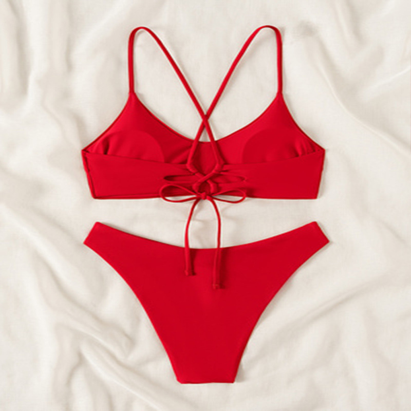 亚马逊2024新款欧美性感游泳衣女款高级感系带沙滩比基尼温泉泳装